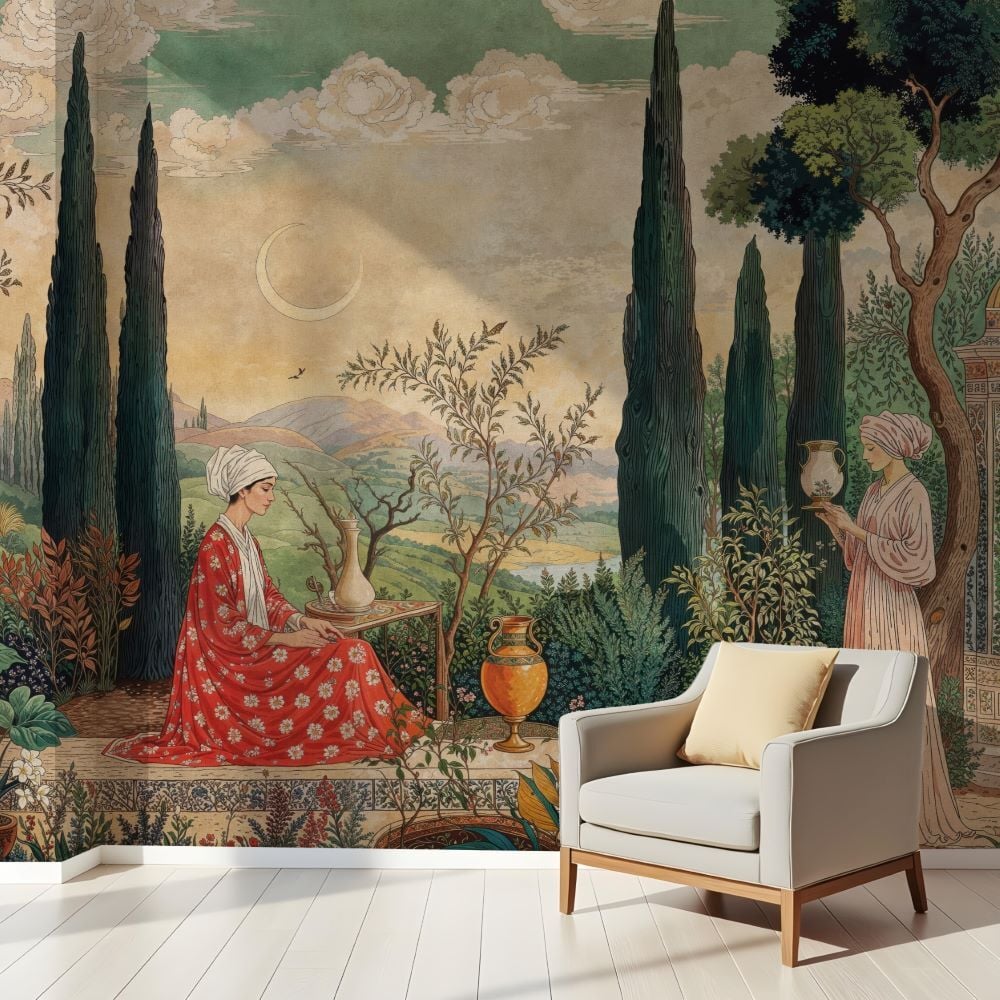 Doğu Esintili Sanatsal Manzara Duvar Kağıdı - Vintage & Dekoratif Tasarım