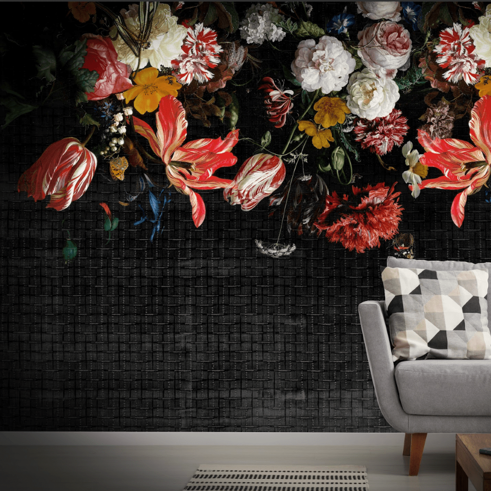 Doku Desenli Renkli Çiçekli Duvar Kağıdı