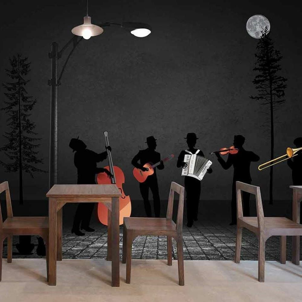 Dolunay Altında Sokak Müzisyenleri Duvar Kağıdı