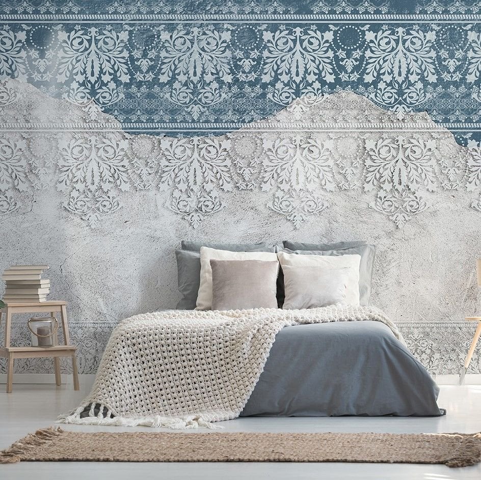Duvar Desen Etnik Mavi Beyaz Duvar Kağıdı