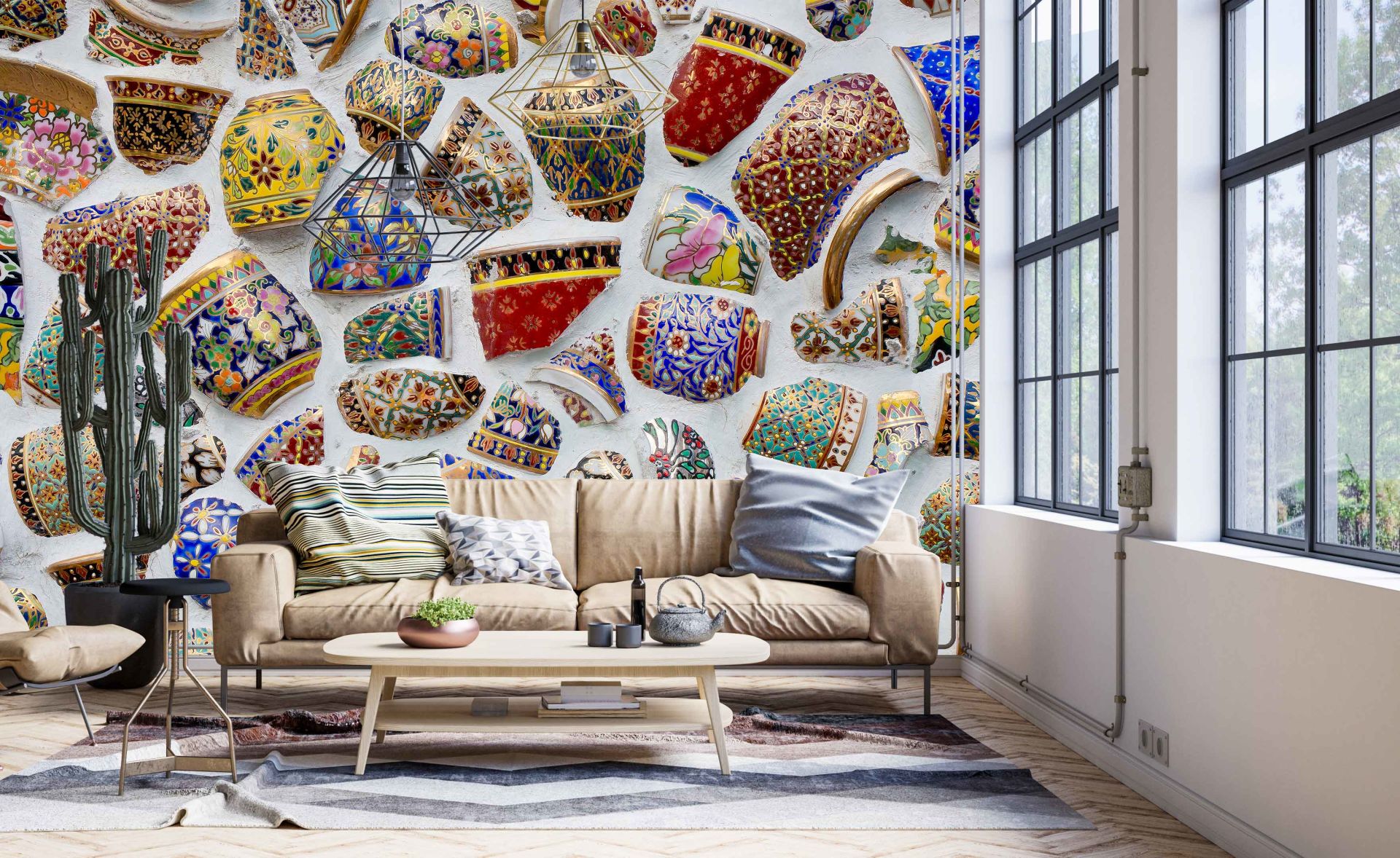 Duvarda Çini Vazolar Tasarım Duvar Kağıdı