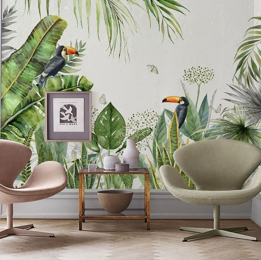 Egzotik Papağanlar Yapraklar Duvar Kağıdı