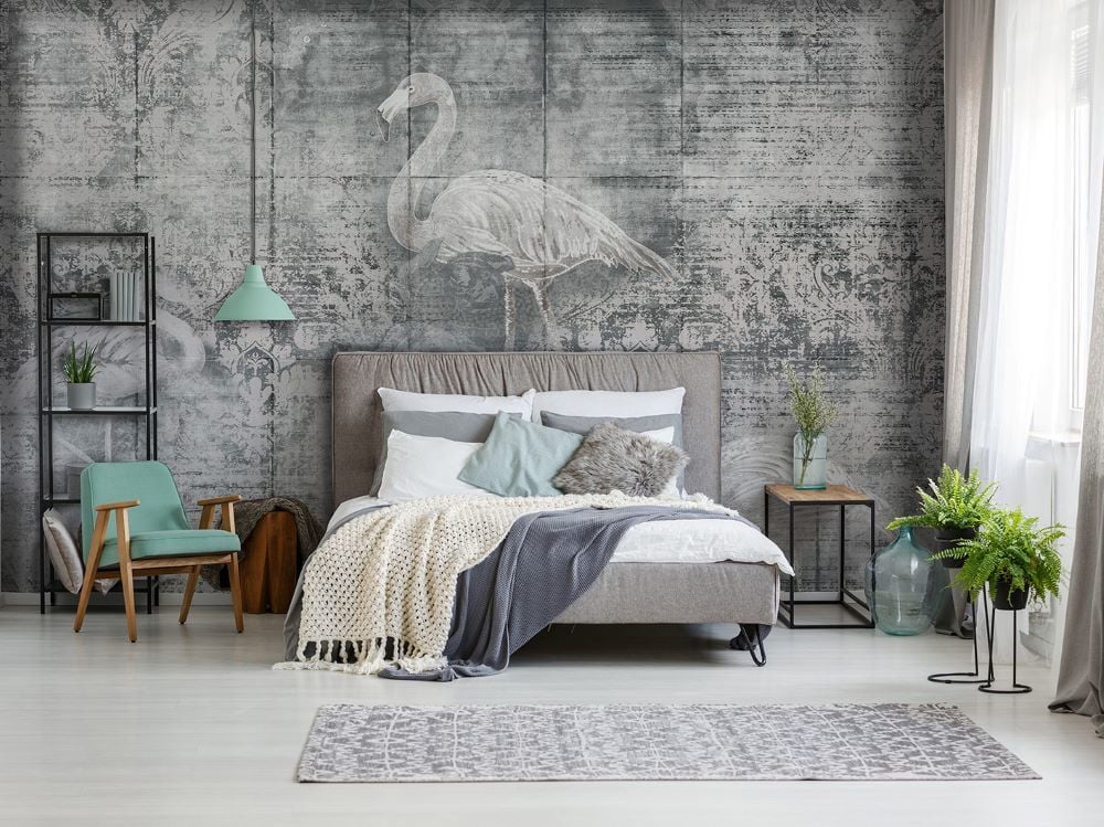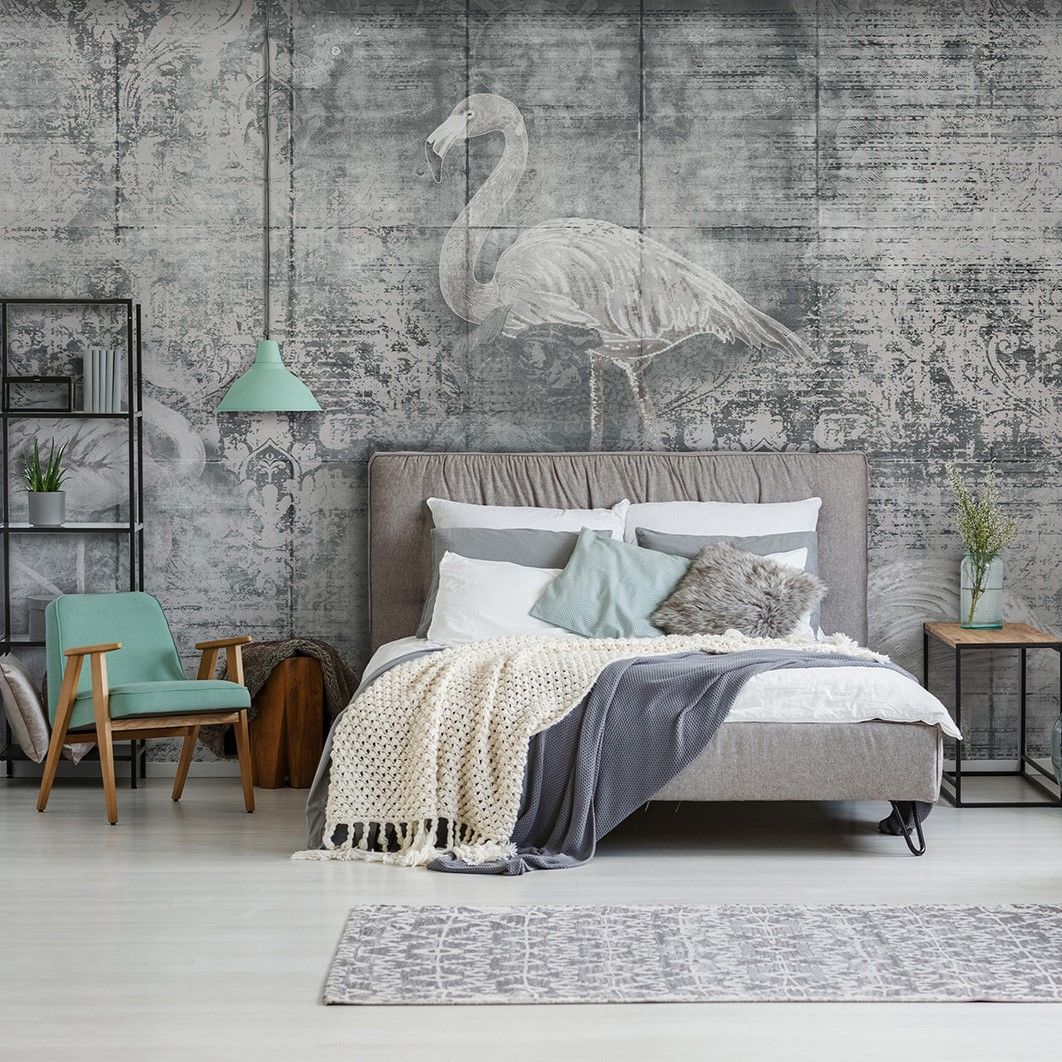 Eskitme Antrasit Zemin Filamingo Duvar Kağıdı