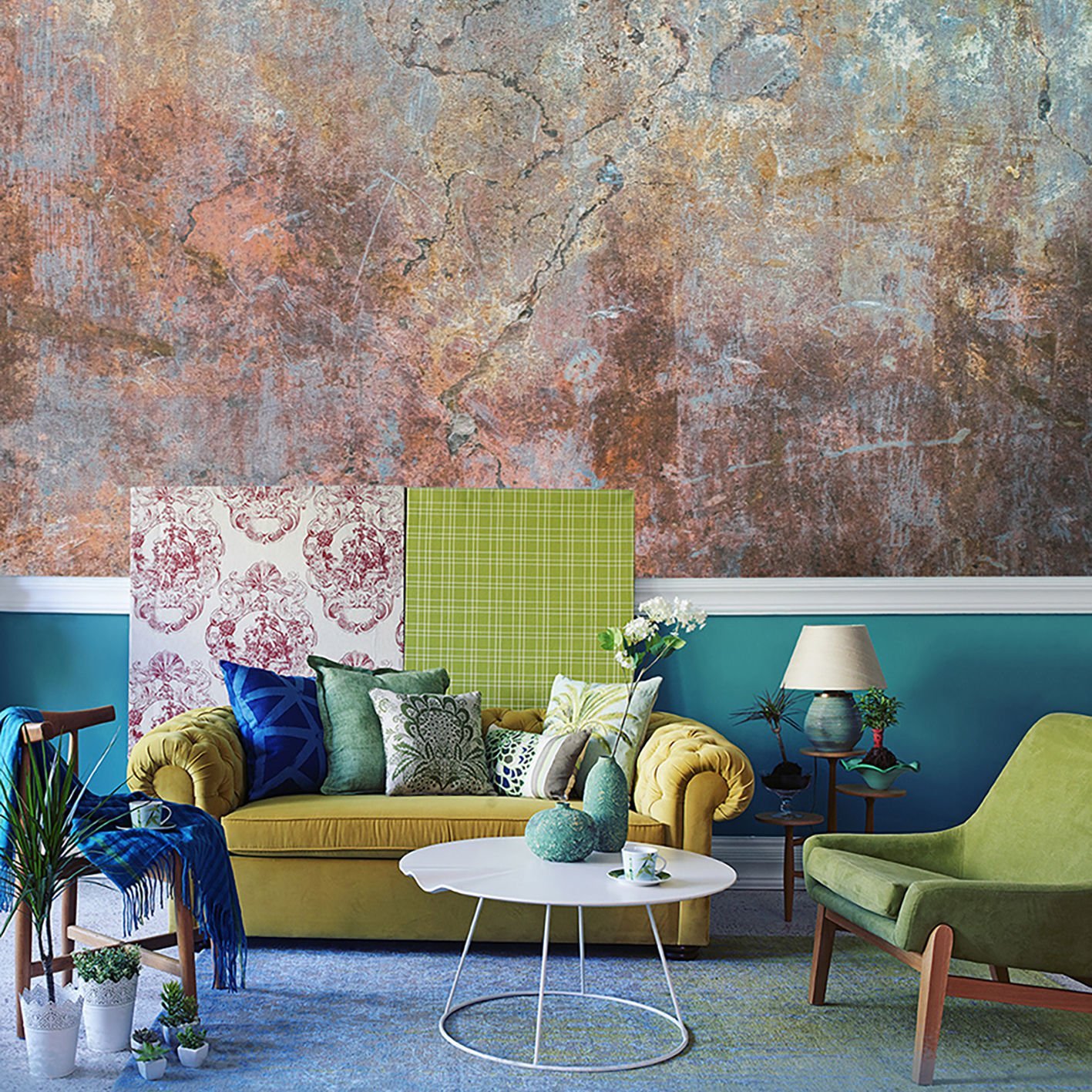 Eskitme Bakır Kahve Mavi Renkler Duvar Kağıdı