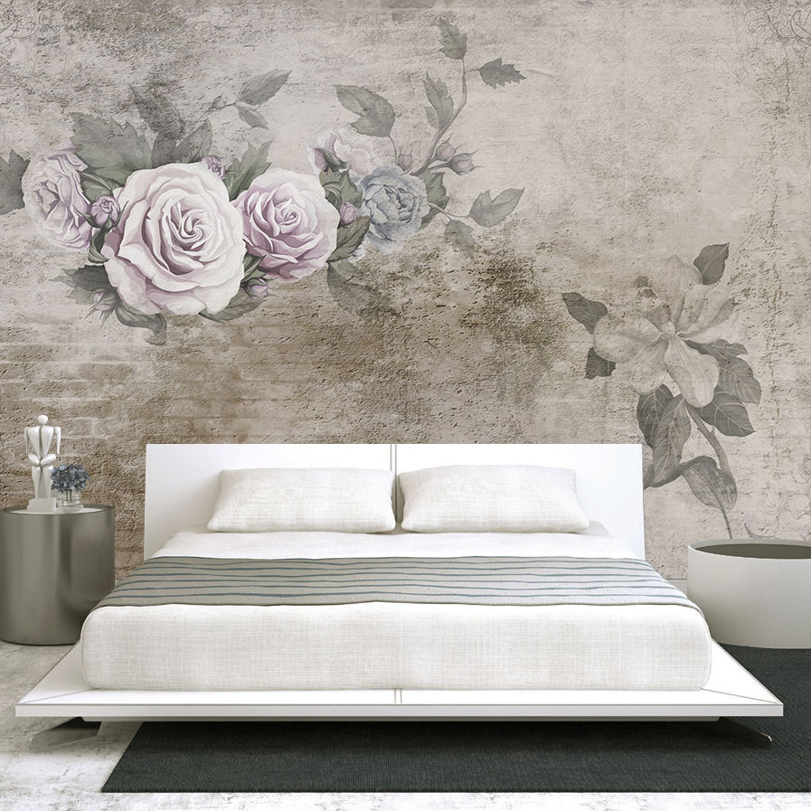 Eskitme Taş Duvarda Güller Duvar Kağıdı