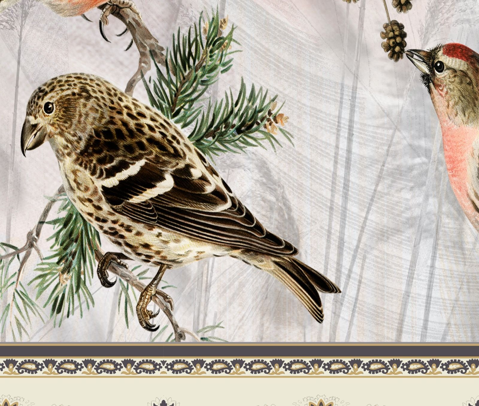 Etnik Desen ve Kuşlar Duvar Kağıdı