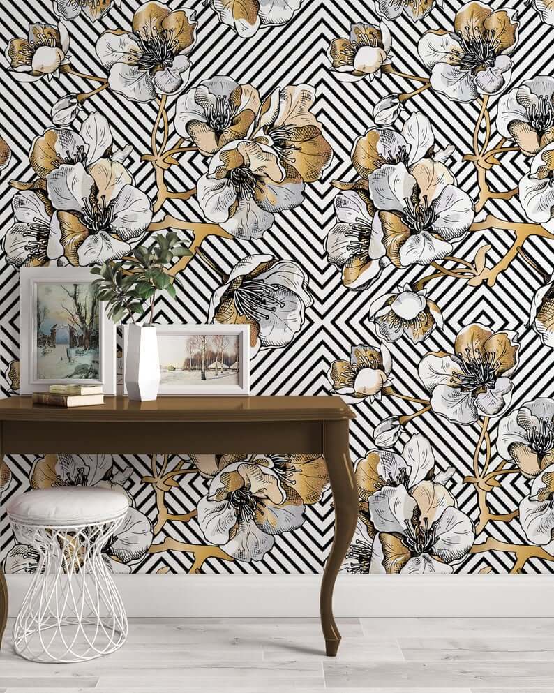 Fütüristik Beyaz Çiçekler Duvar Kağıdı