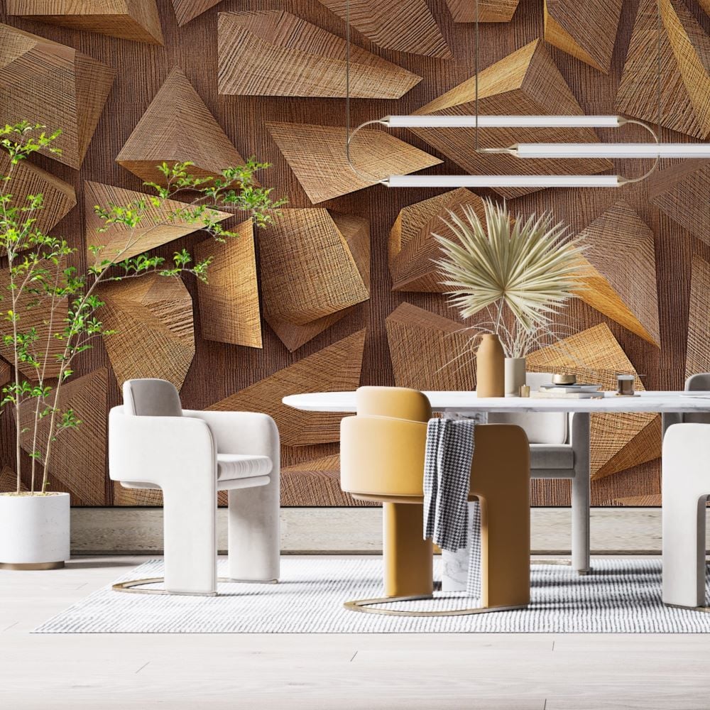 Geometrik Ahşap Uçan Prizma Şekiller Duvar Kağıdı