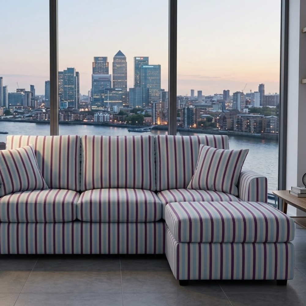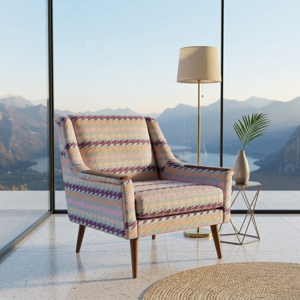 Geometrik çizgiler ve kaz ayağı deseninin modern uyumunu bir araya getiren bu döşemelik kumaş, yaşam alanlarına güçlü ve dengeli bir karakter kazandırır. Desen yapısı sayesinde hem klasik hem de modern dekorasyon tarzlarıyla uyum sağlayarak mekânlara estetik bir görünüm sunar.