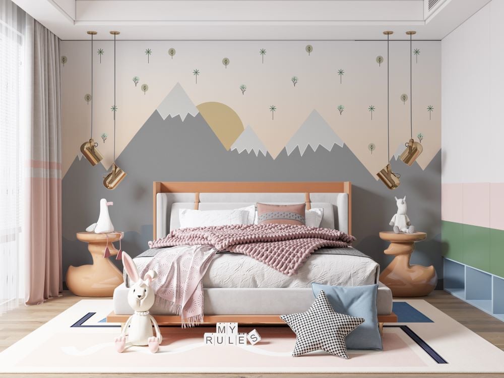 Geometrik Dağlar Güneş Tasarım Duvar Kağıdı