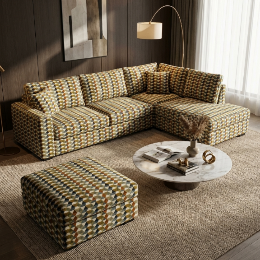Modern geometrik desenlerin sıcak ve doğal tonlarla buluştuğu PECADO döşemelik kumaş, yaşam alanlarına karakter ve hareket katar. 140 cm en ölçüsüne sahip bu özel tasarım; koltuk, puf ve dekoratif yastık uygulamaları için ideal olup, güçlü dokusu ve estetik görünümüyle uzun ömürlü ve şık bir kullanım sunar.