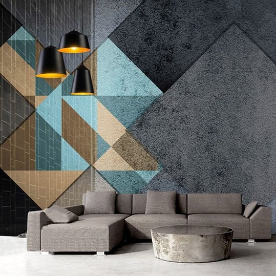 Geometrik Kareler Antrasit Mavi Duvar Kağıdı