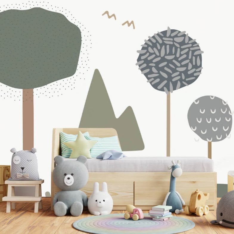 Geometrik Pastel Renkler Ağaçlar Duvar Kağıdı
