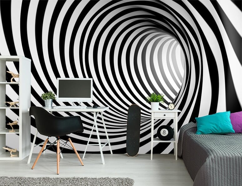 Geometrik Siyah Beyaz Girdap Duvar Kağıdı