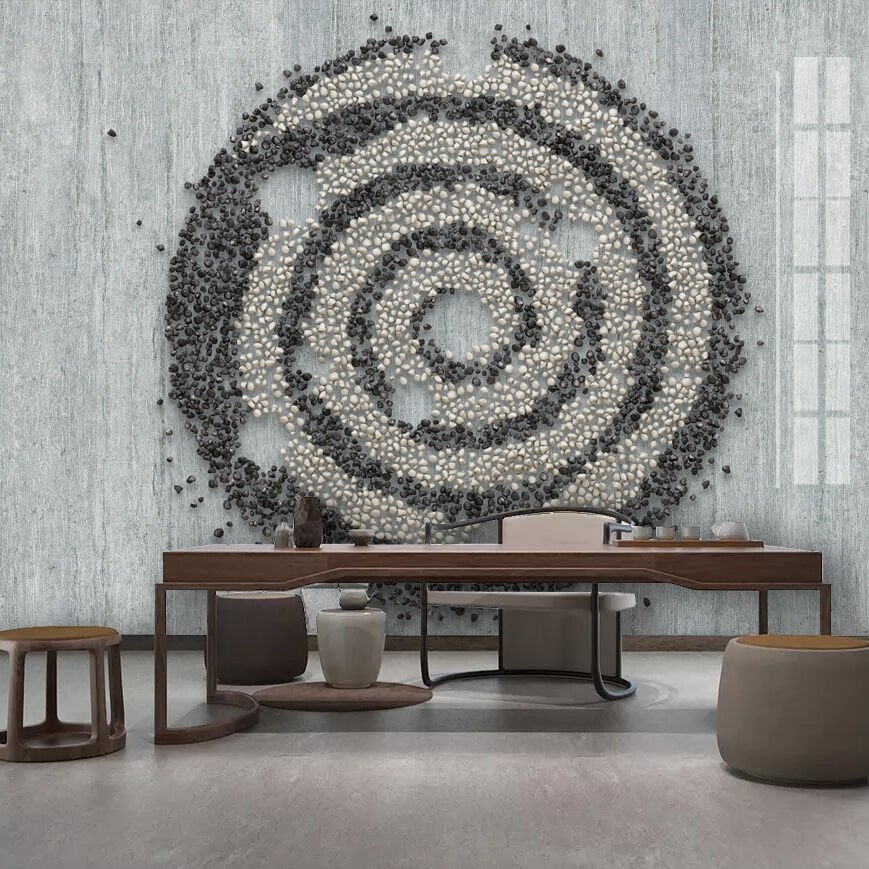 Geometrik Taş Desenler Boyutlu Duvar Kağıdı