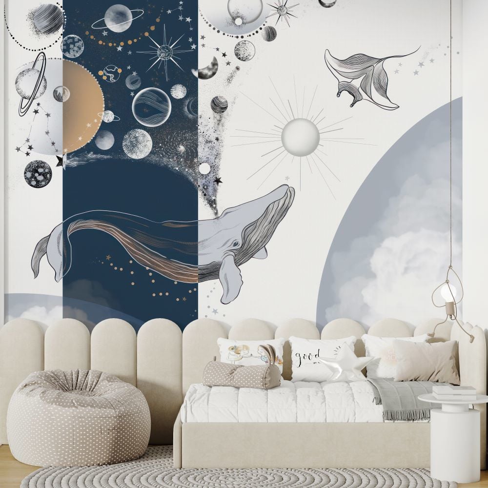 Gezegenler Balina Kalkan Balığı Tasarım Duvar Kağıdı
