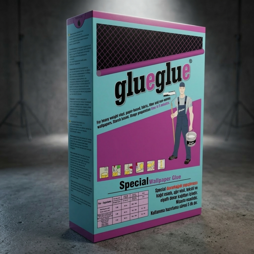 GlueGlue Special serisi özellikle ağır vinil ve kalın yapılı duvar kaplamalarında güçlü yapışma performansı sunar. Duvar kağıdının yüzeye eşit şekilde tutunmasına yardımcı olarak daha düzgün ve kaliteli bir uygulama elde edilmesini sağlar.