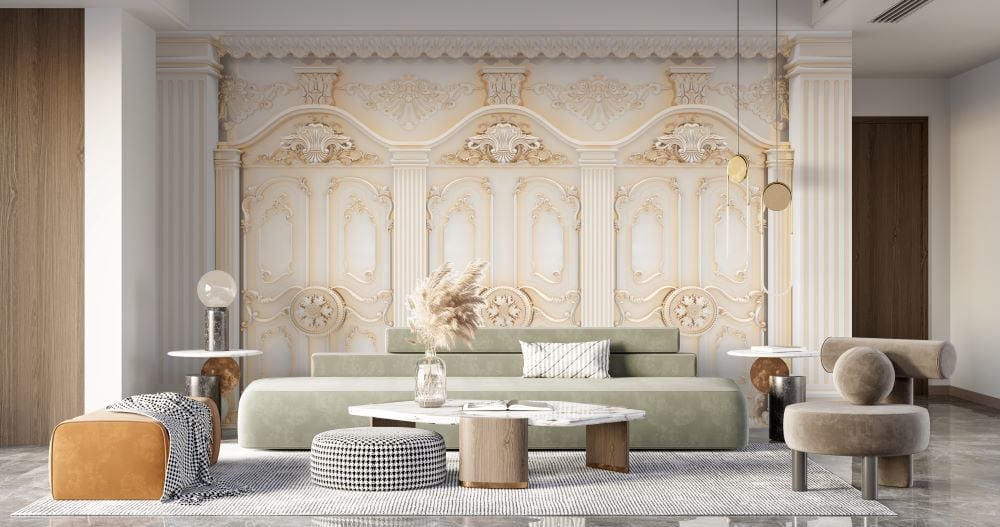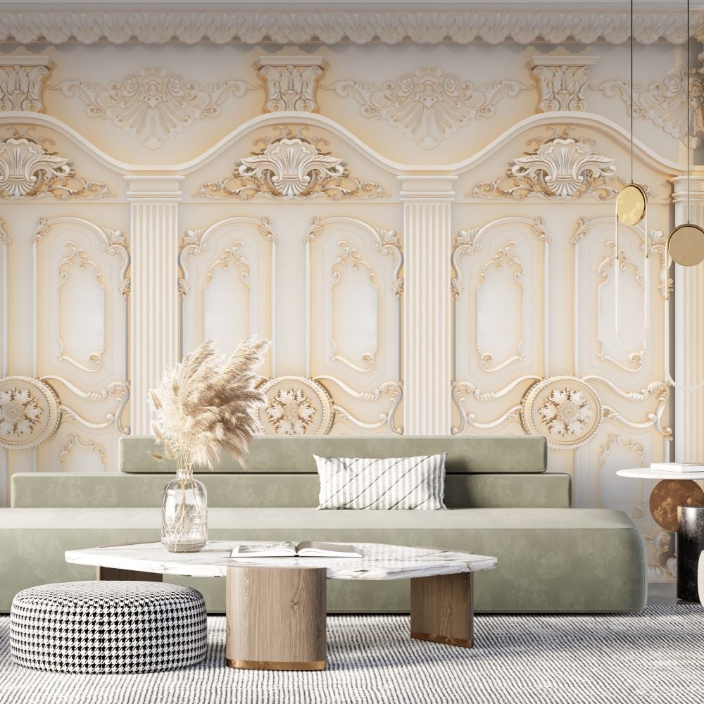 Gold Kapılar Rölyef Görselli Tasarım Duvar Kağıdı
