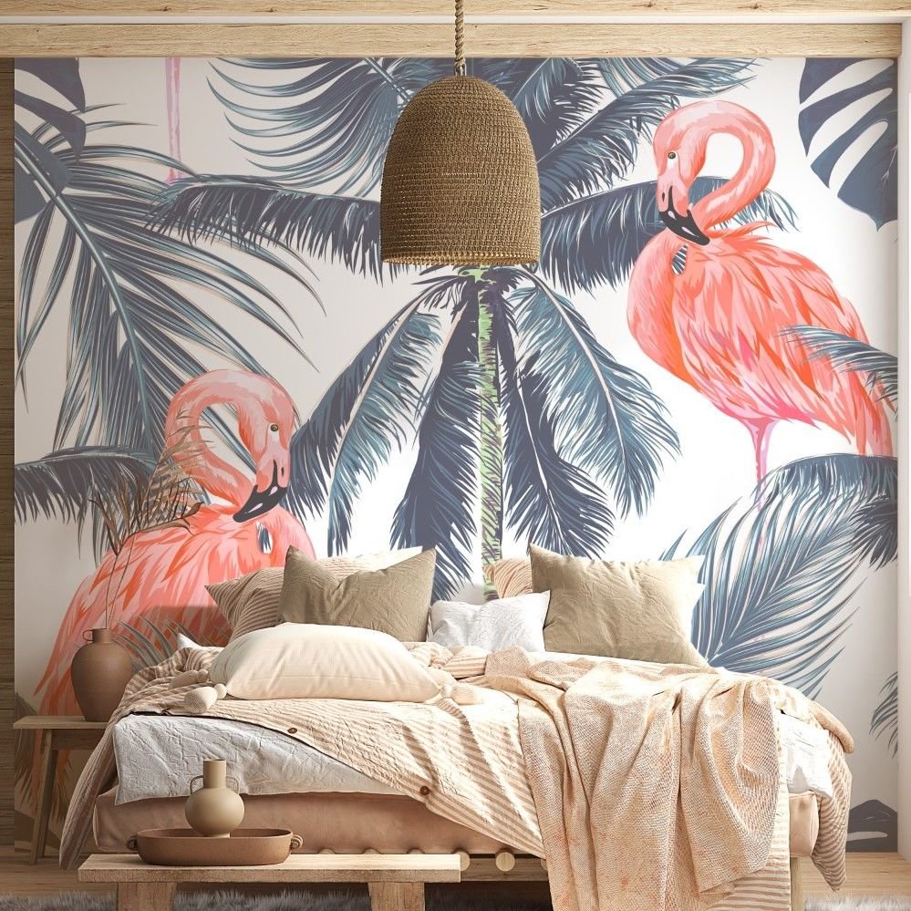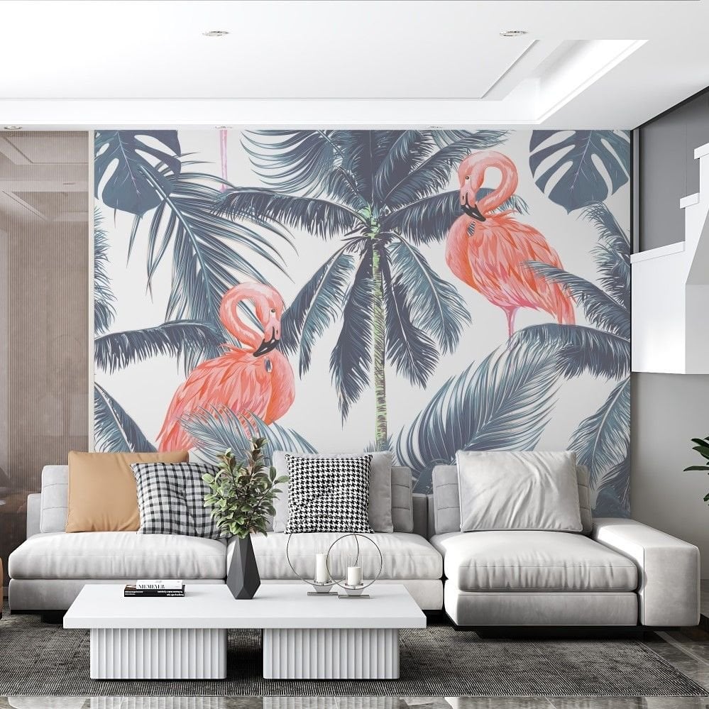 Gri Palmiye Ağaçları İçinde Pelikanlar Duvar Kağıdı