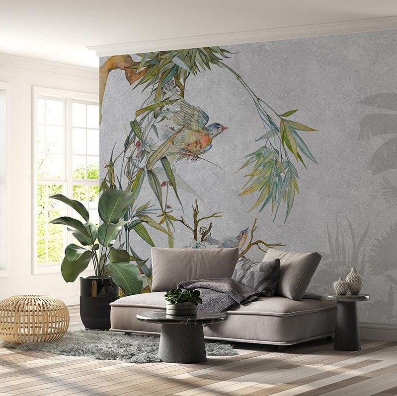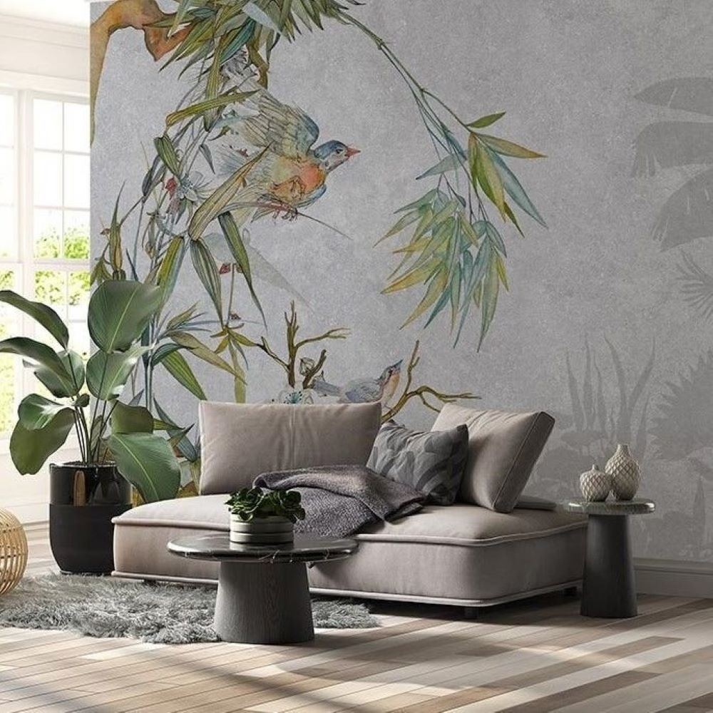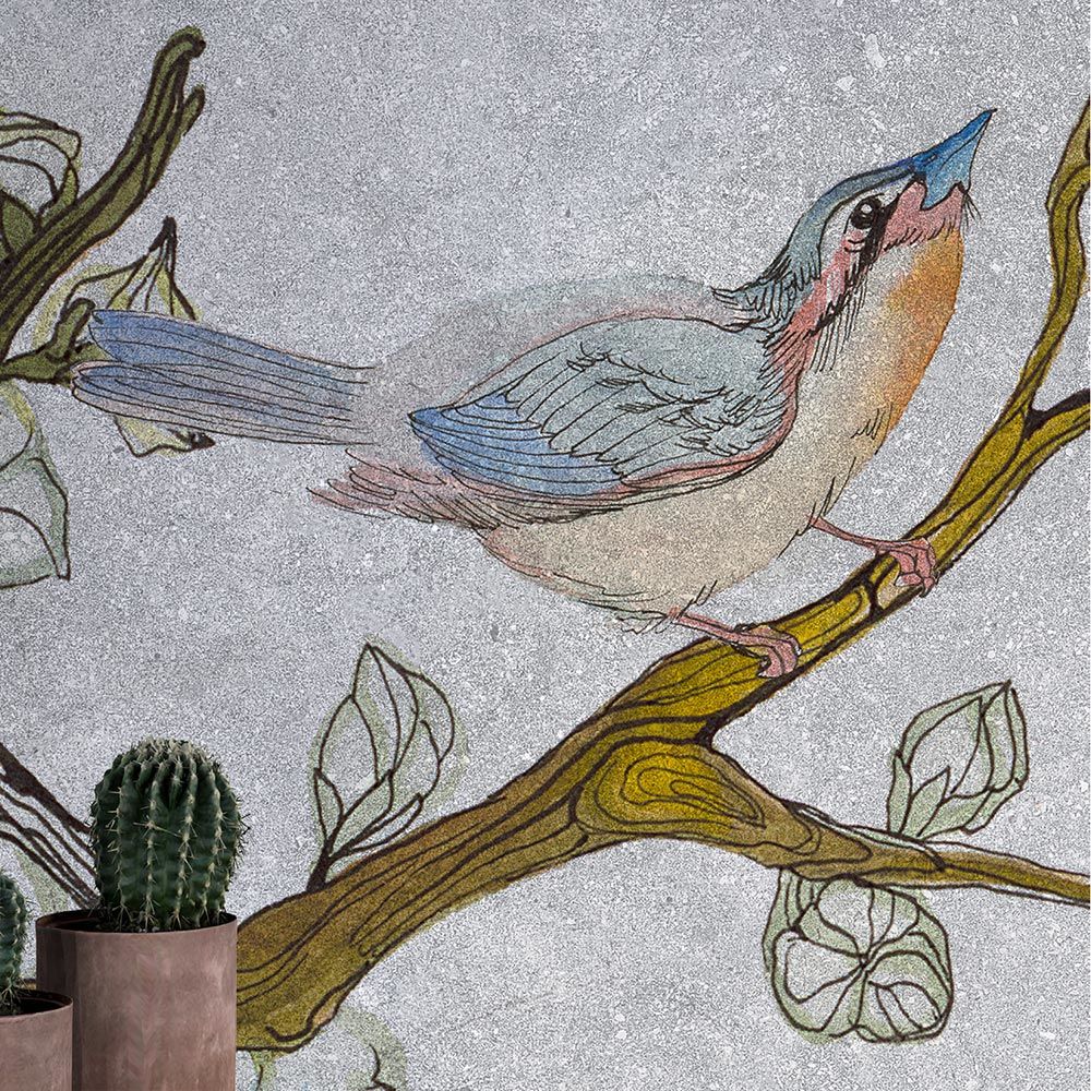 Gri Zeminde Ağaçta Serçe Kuşu Duvar Kağıdı