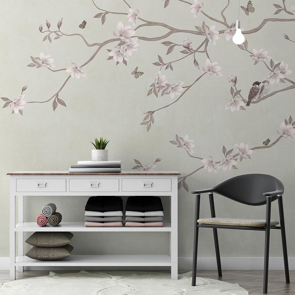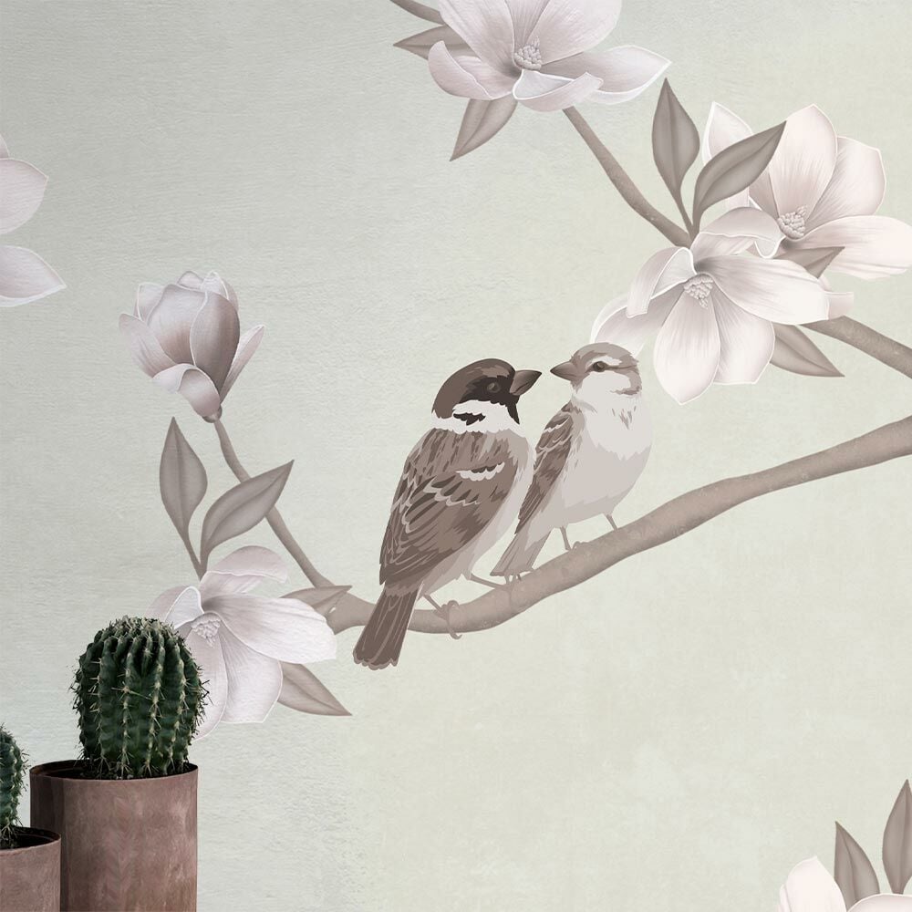 Gül Kurusu Zarif Çiçekler Kuşlar Duvar Kağıdı