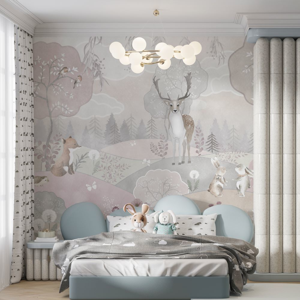 Güller ve Günahlar Dizisi Çocuk Odası (Soft Renkler Geyik Tavşanlar) Duvar Kağıdı