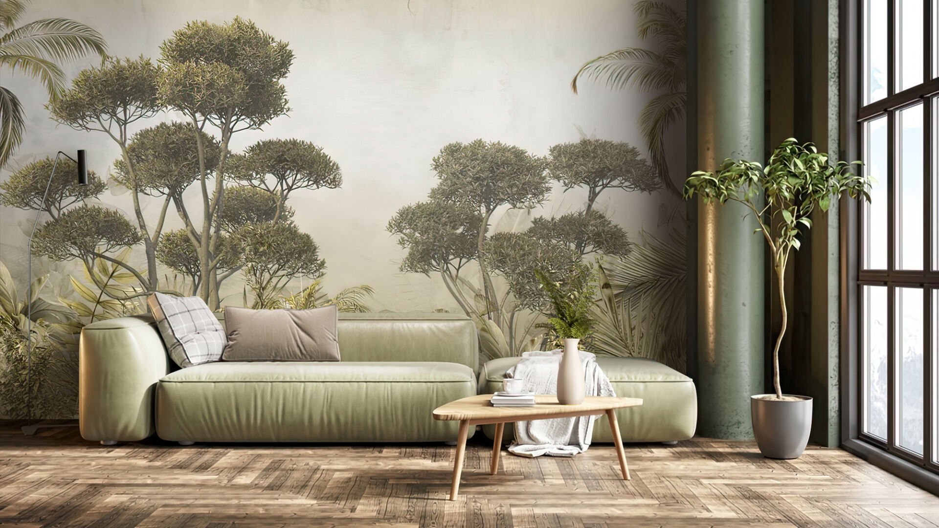 Haki Yeşil Tonlar Çam Ağaçları Duvar Kağıdı