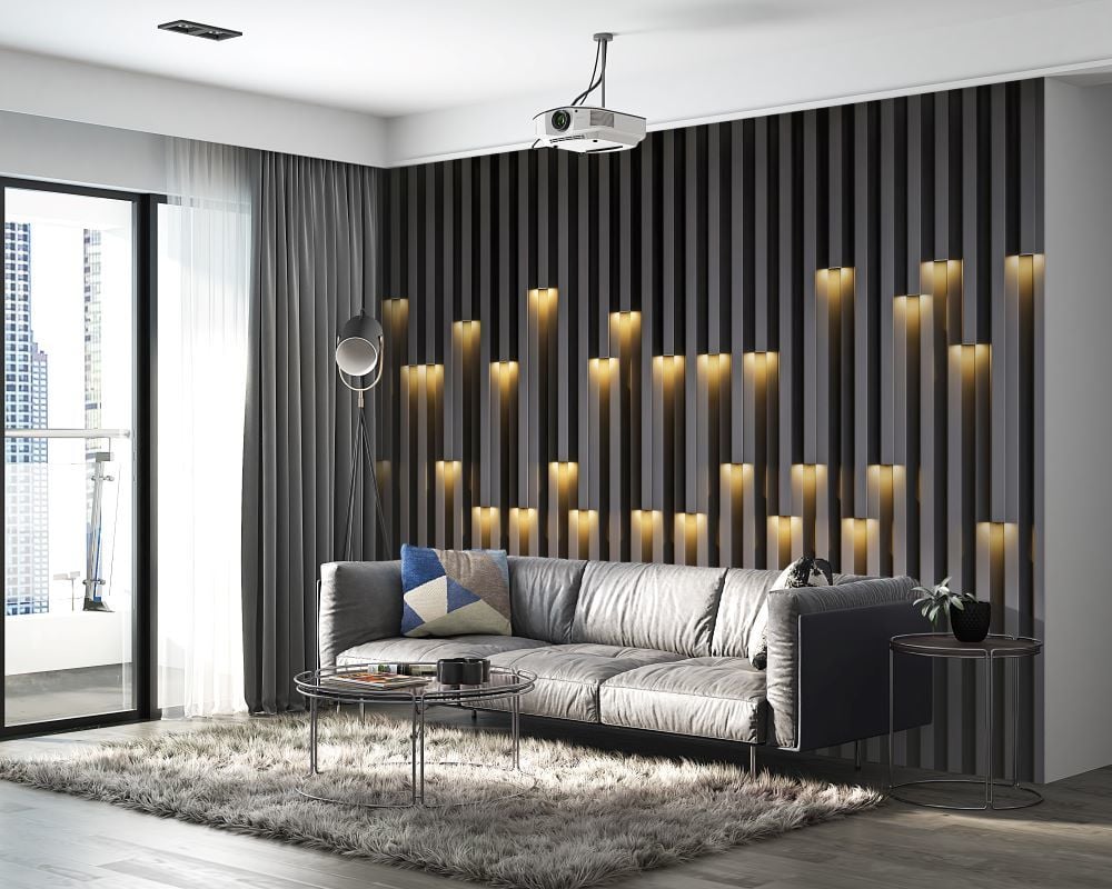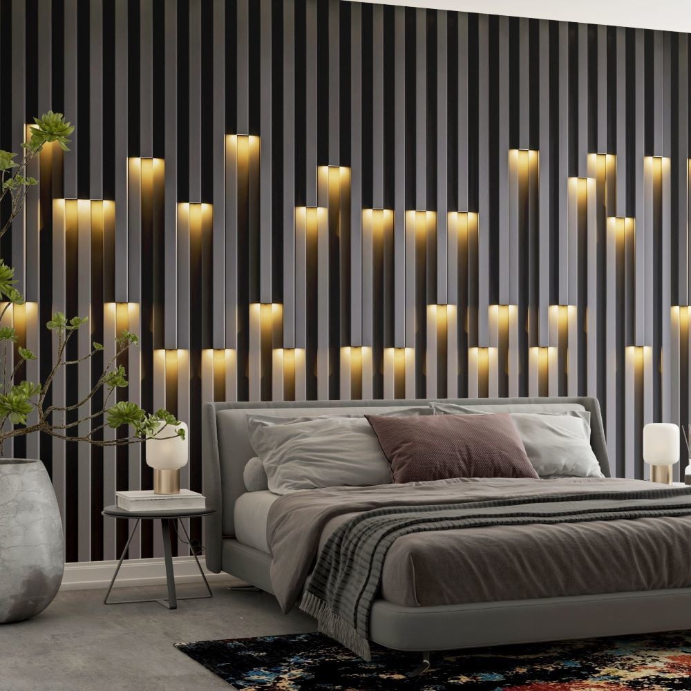 Işık Efektli Duvar Çıtası Görünümlü Duvar Kağıdı