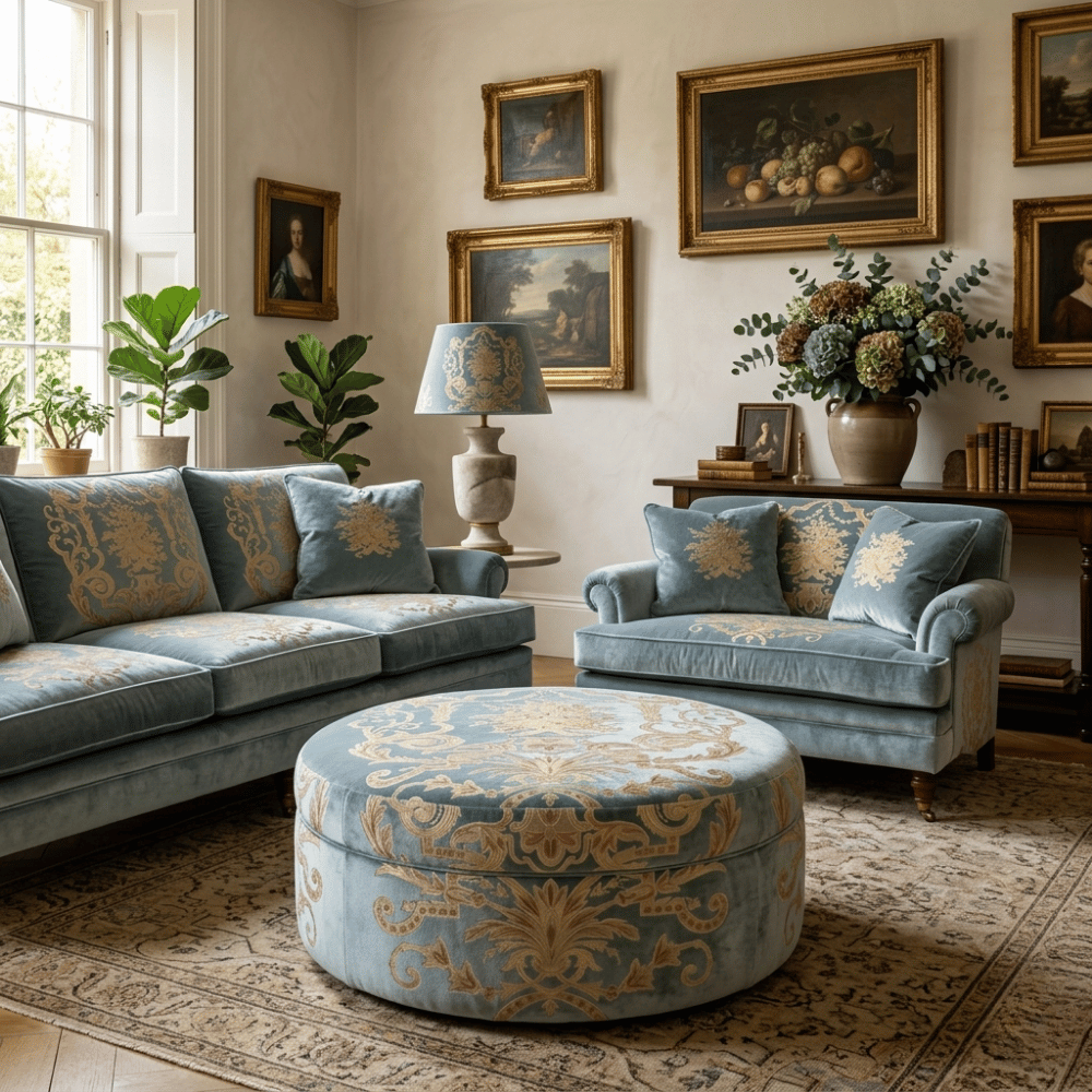 Kadife Üzeri Nakışlı Kombin Döşemelik Kumaşlar