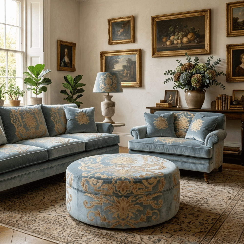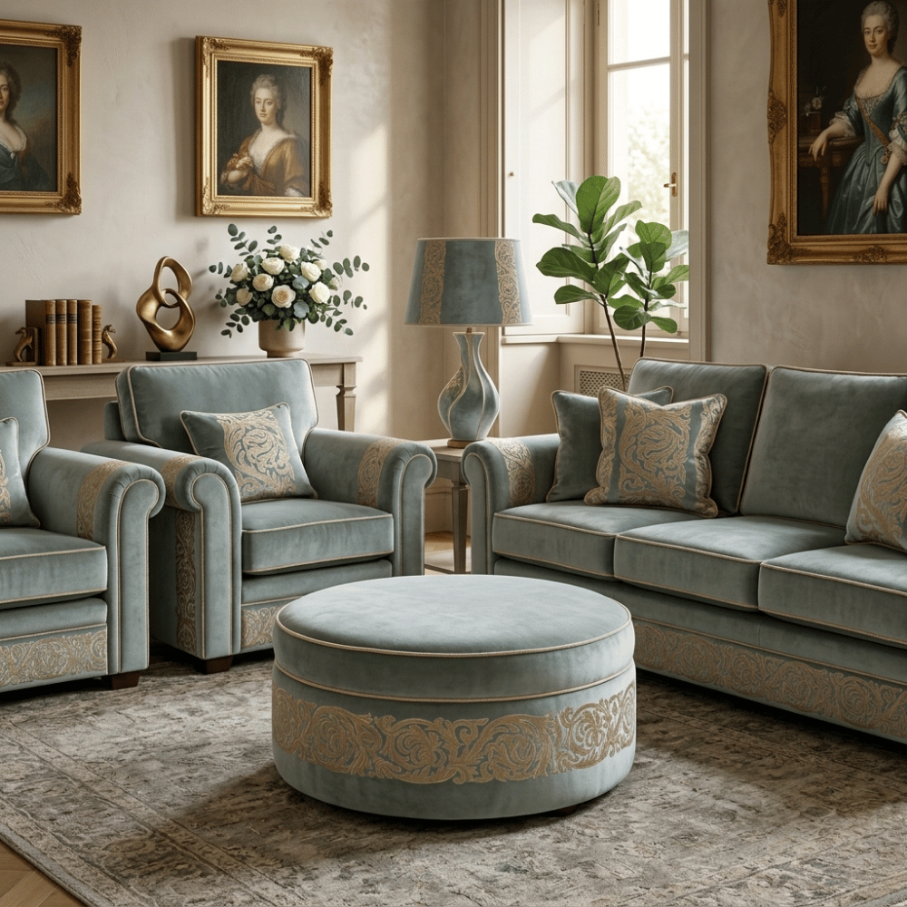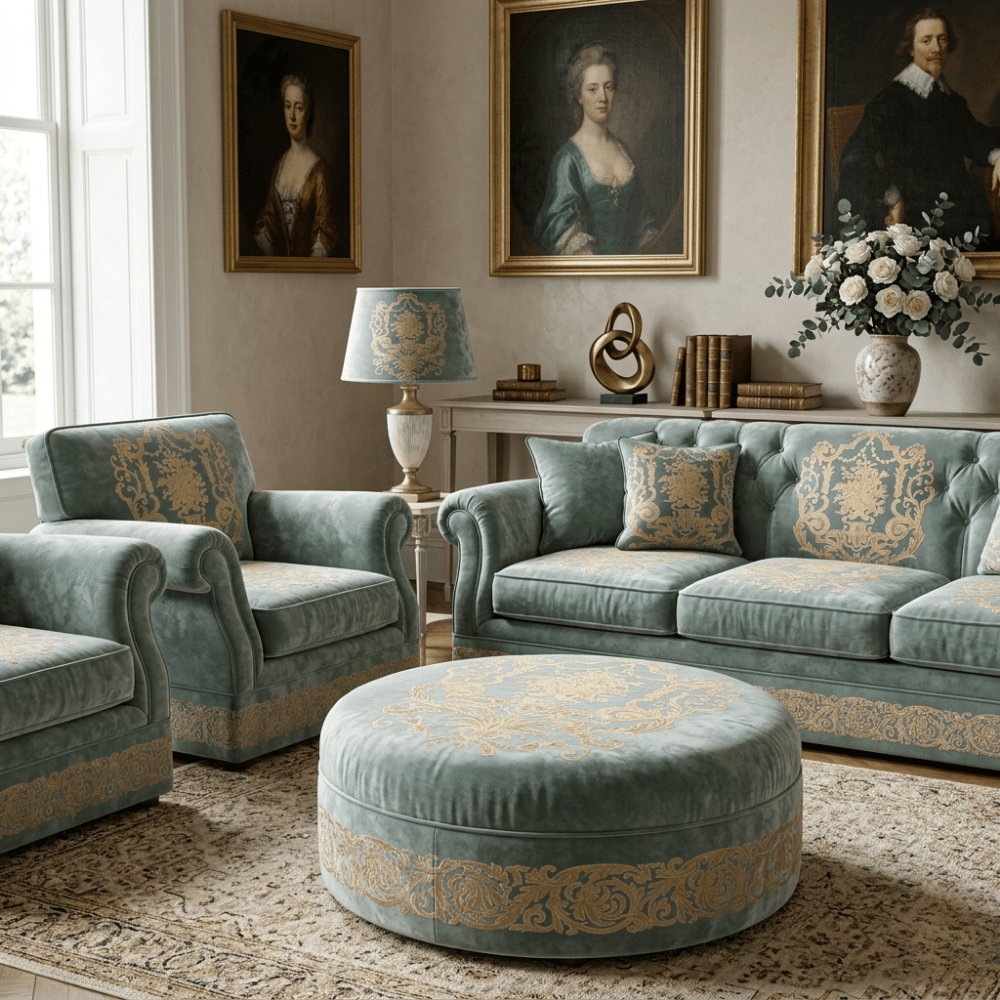Kadife zemin üzerine uygulanan nakışlı kombin detaylarıyla tasarlanan bu döşemelik kumaşlar, mekânlara zengin ve sofistike bir karakter kazandırır. Yumuşak dokusu ve desen geçişleri sayesinde hem dekoratif hem de güçlü bir görsel etki sunar.