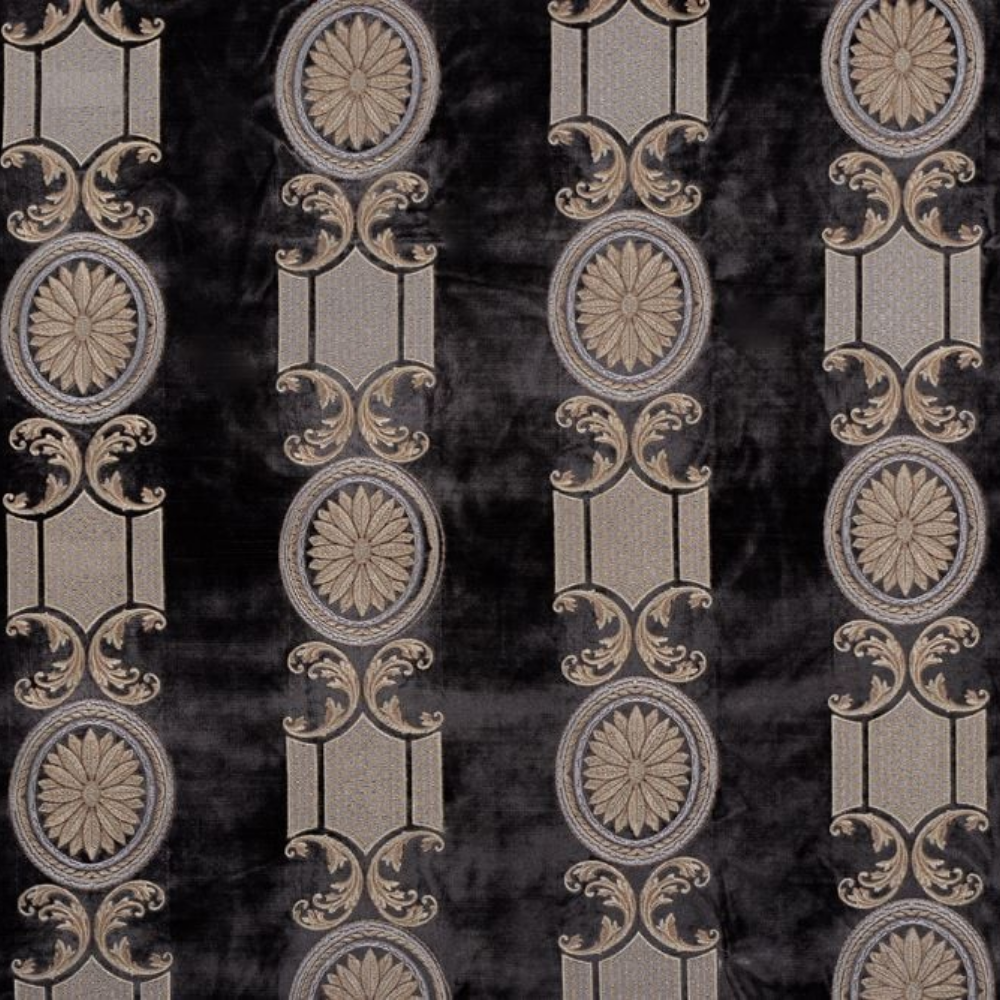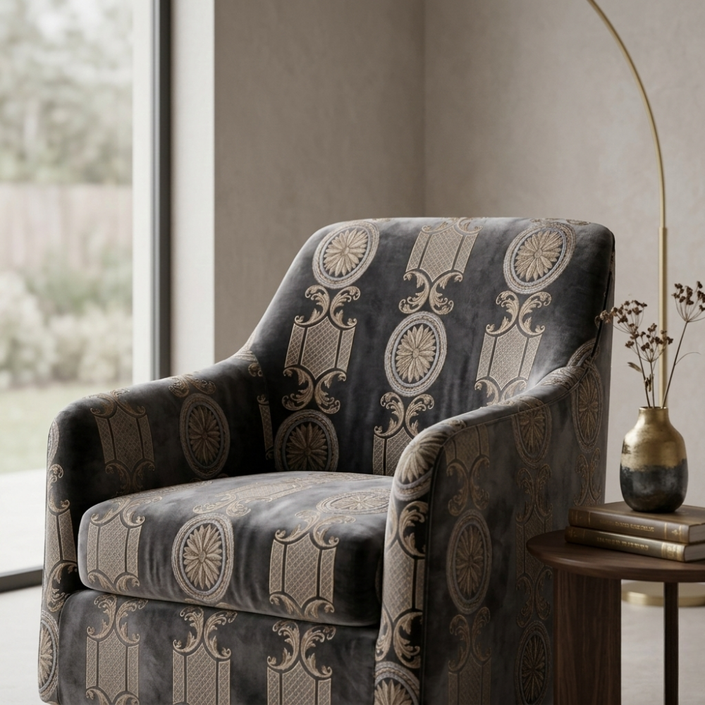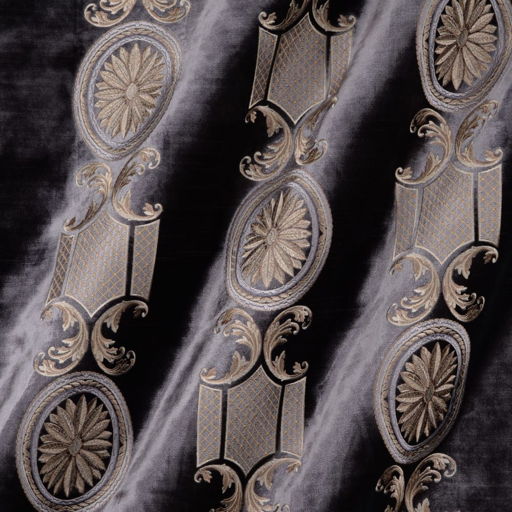 Kadife zemin üzerine işlenen zarif nakış detaylarıyla öne çıkan bu özel kumaş, yaşam alanlarına şık ve sofistike bir atmosfer kazandırır. Dokulu yüzeyi ve işleme detayları sayesinde mekânlarda dikkat çekici ve estetik bir görünüm oluşturur.