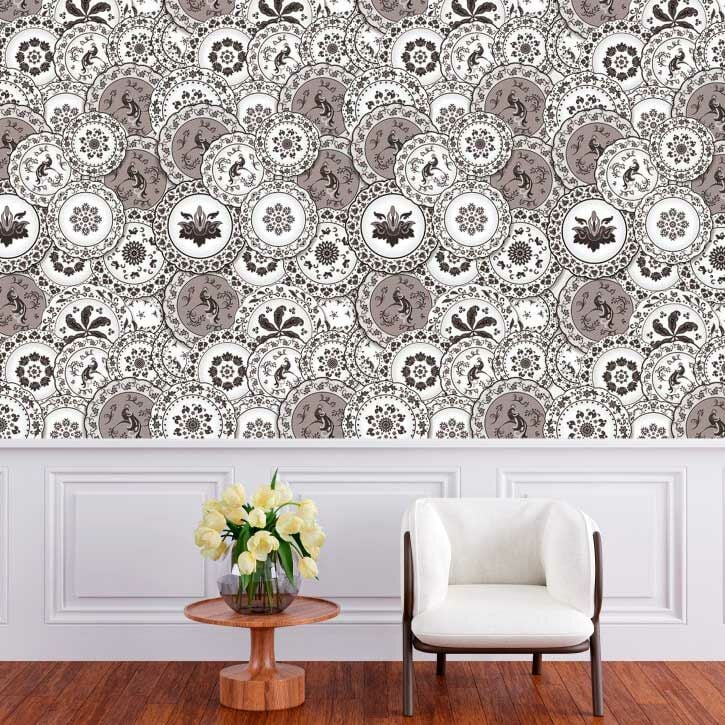 Kahverengi Beyaz Etnik Desen Duvar Kağıdı Özellikleri