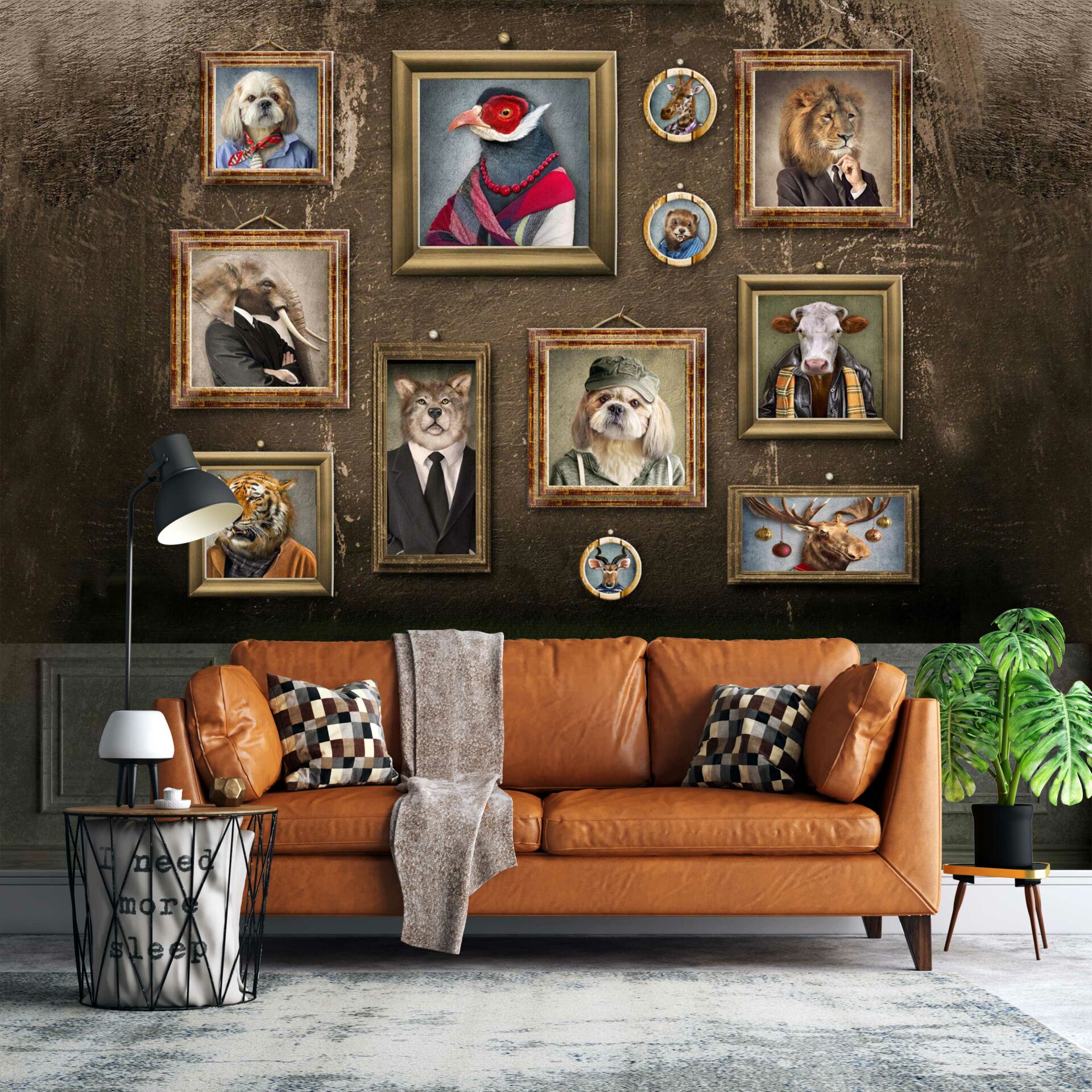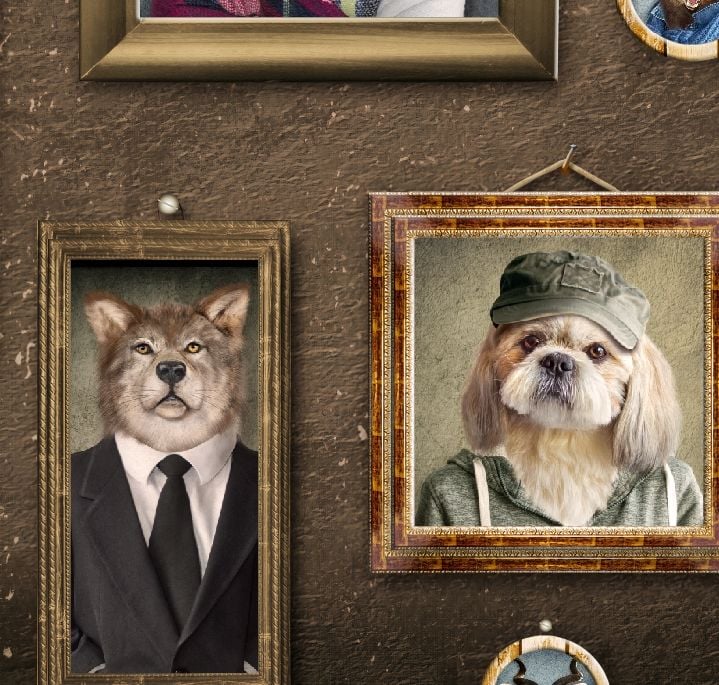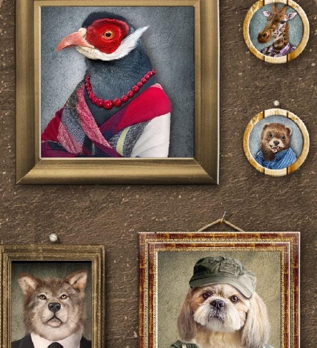 Kahverengi Zemin Çerçeveler İçinde Hayvan Portreleri Duvar Kağıdı Özellikleri
