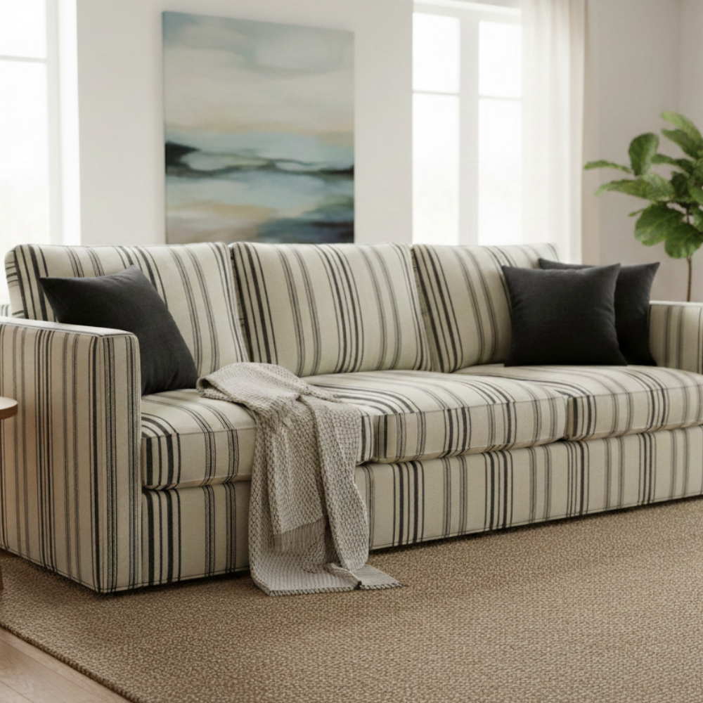 Kalın ve ince çizgilerin dengeli uyumu ile tasarlanan bu döşemelik kumaş, mekânlara sade, modern ve zamansız bir görünüm kazandırır. Çizgisel desen yapısı sayesinde farklı dekorasyon stilleriyle kolayca uyum sağlar.
