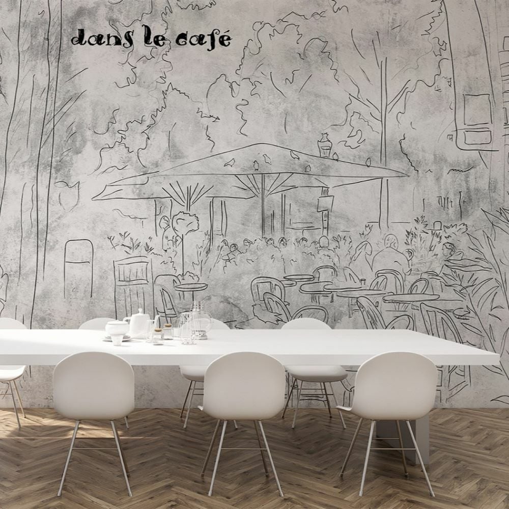 Karakalem Karikatür Çizim Kafe Duvar Kağıdı