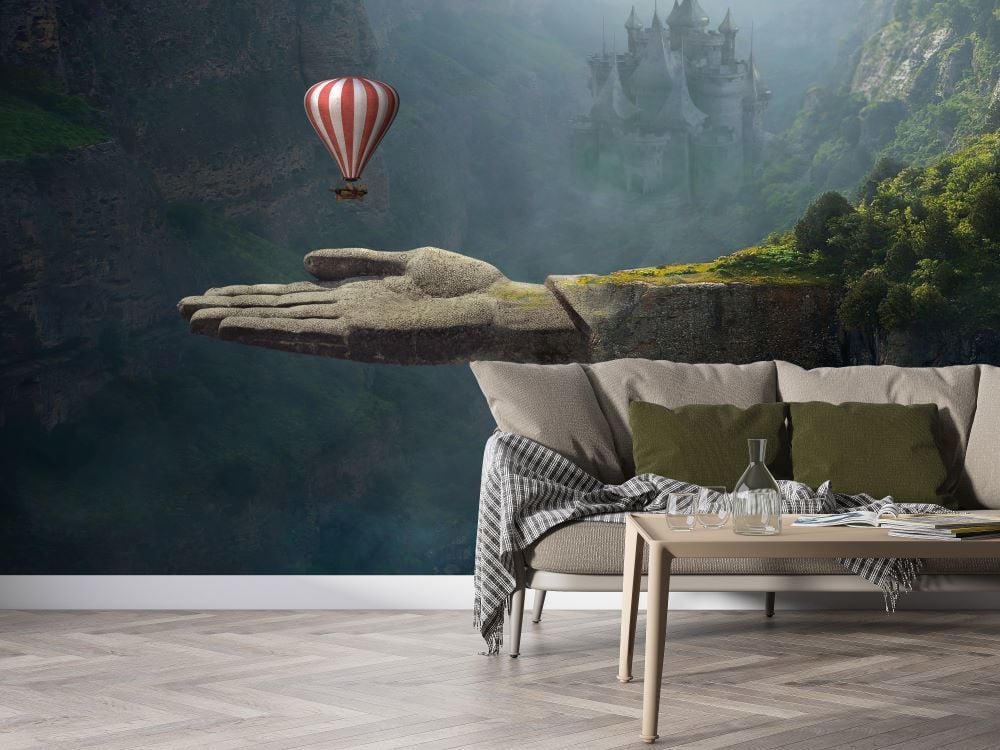 Kaya El Ve Uçan Hava Balonu Tasarım Duvar Kağıdı