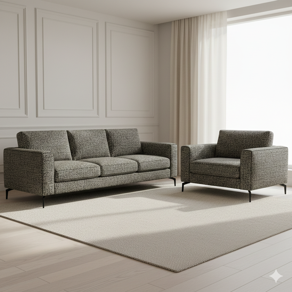 Kazayağı deseninin klasik şıklığını düz kombin dokularla bir araya getiren bu döşemelik kumaş, mekânlara sofistike ve zamansız bir karakter kazandırır. Dengeli desen geçişleri sayesinde hem klasik hem de modern dekorasyon stilleriyle uyum sağlar.