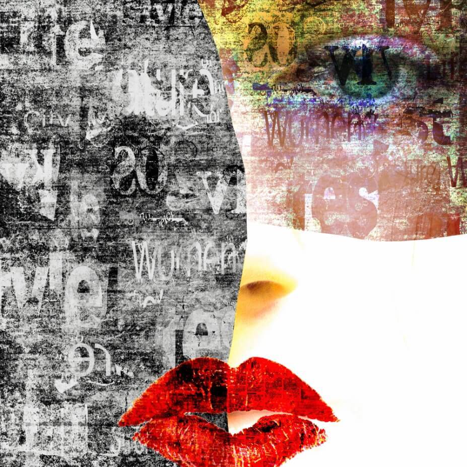 Kırmızı Rujlu Yazılı Kadın Yüz Duvar Kağıdı