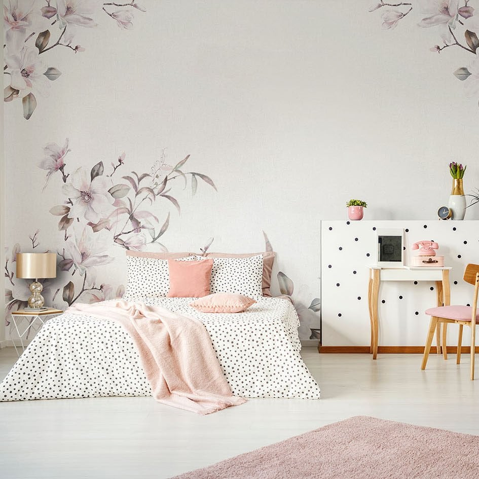 Köşelerden Sarkan Soft Çiçekler Duvar Kağıdı