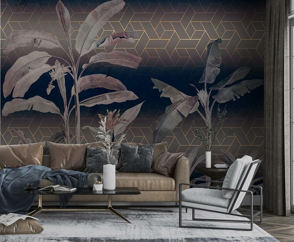 Koyu Kahve Tonlarda Tropik Ağaçlar Duvar Kağıdı