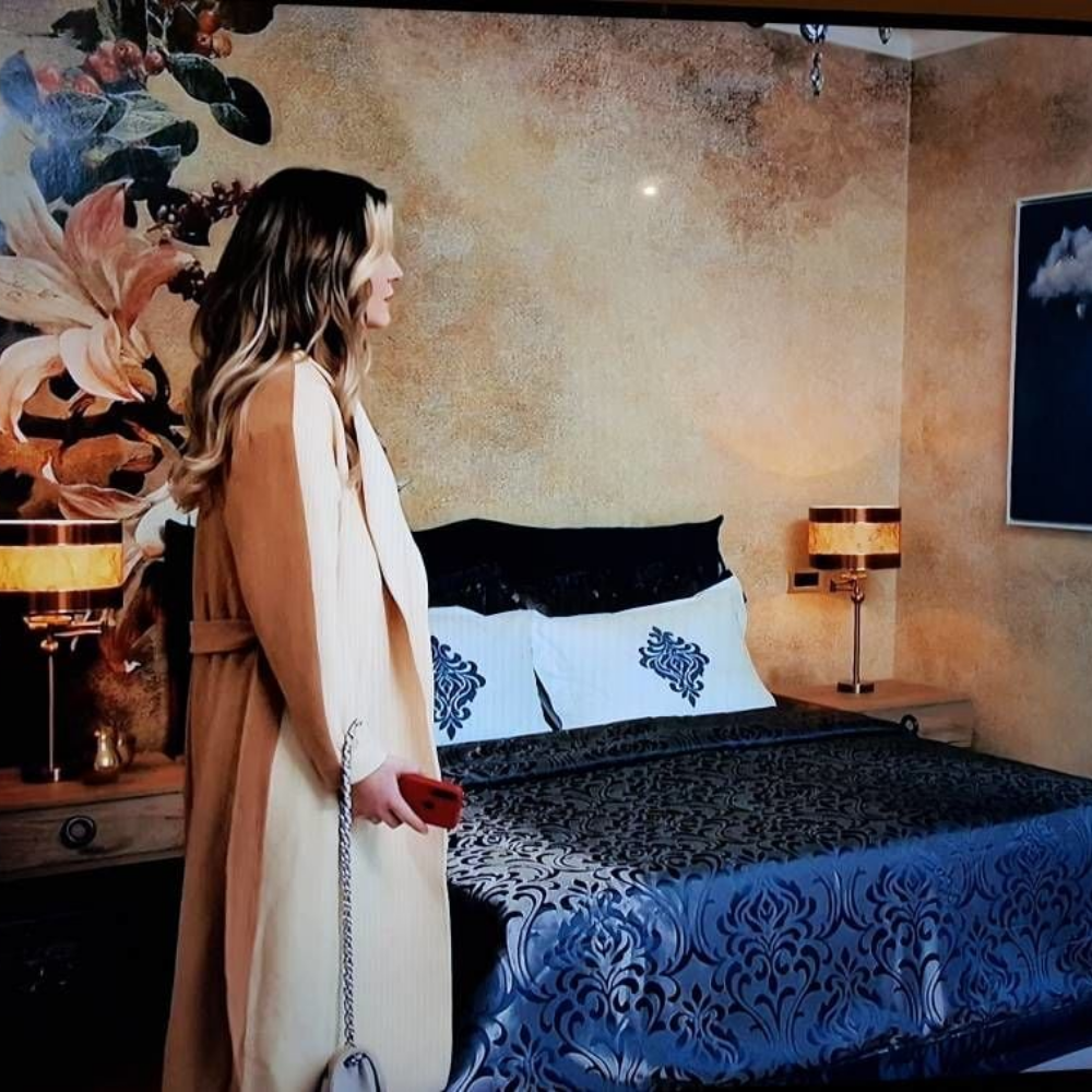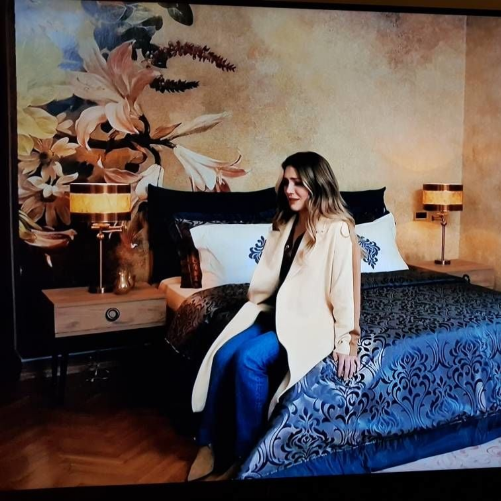 Tv De Biz koleksiyonu içerisinde yer alan Masumiyet Hale Ilgaz (Hülya Avşar) Yalı Konuk Odası Duvar Kağıdı, GOLD FİLM imzalı FOX TV “Masumiyet” dizisinin konuk odası dekorasyonu için doğanın zarif renklerinden ilham alınarak tasarlanmıştır.