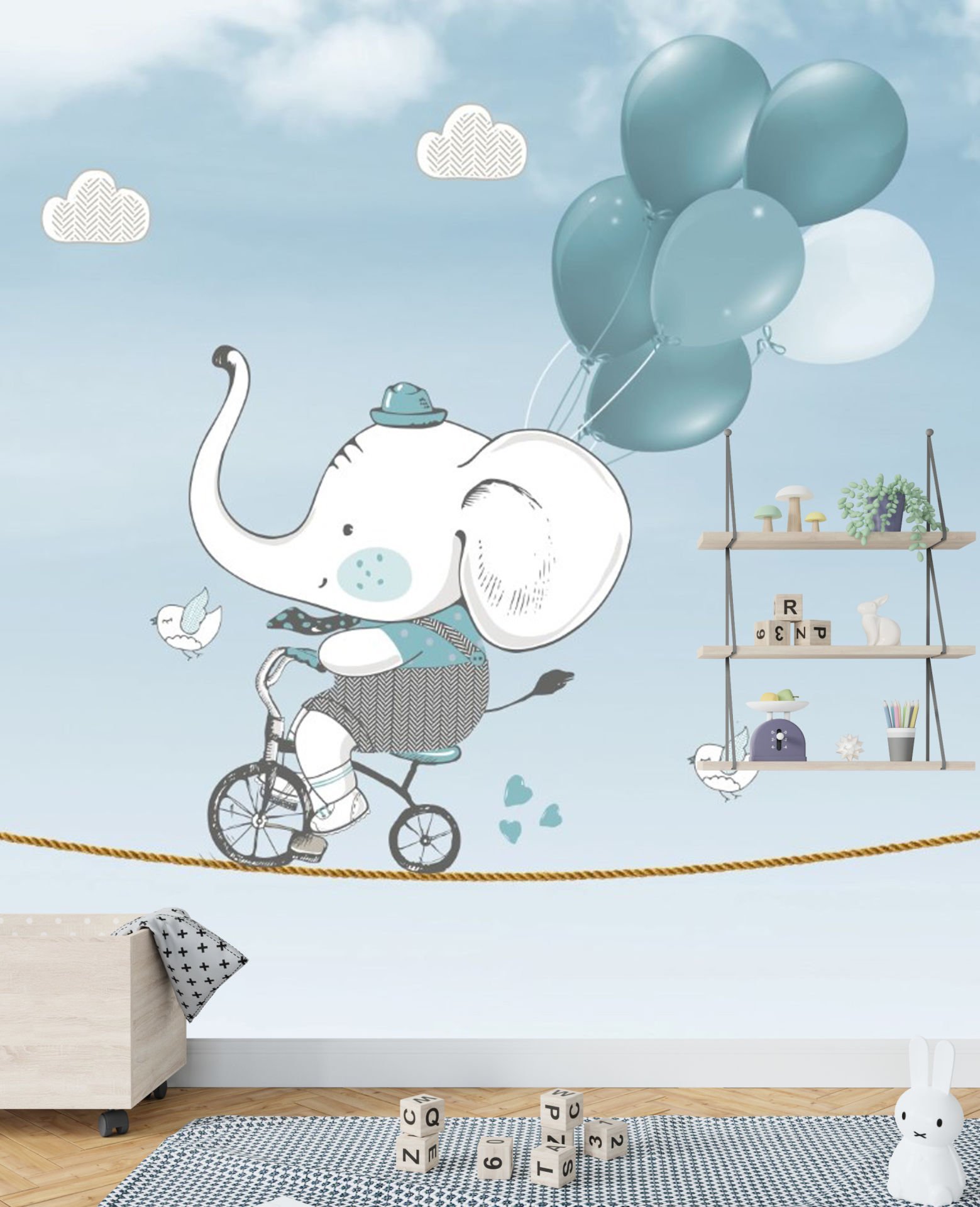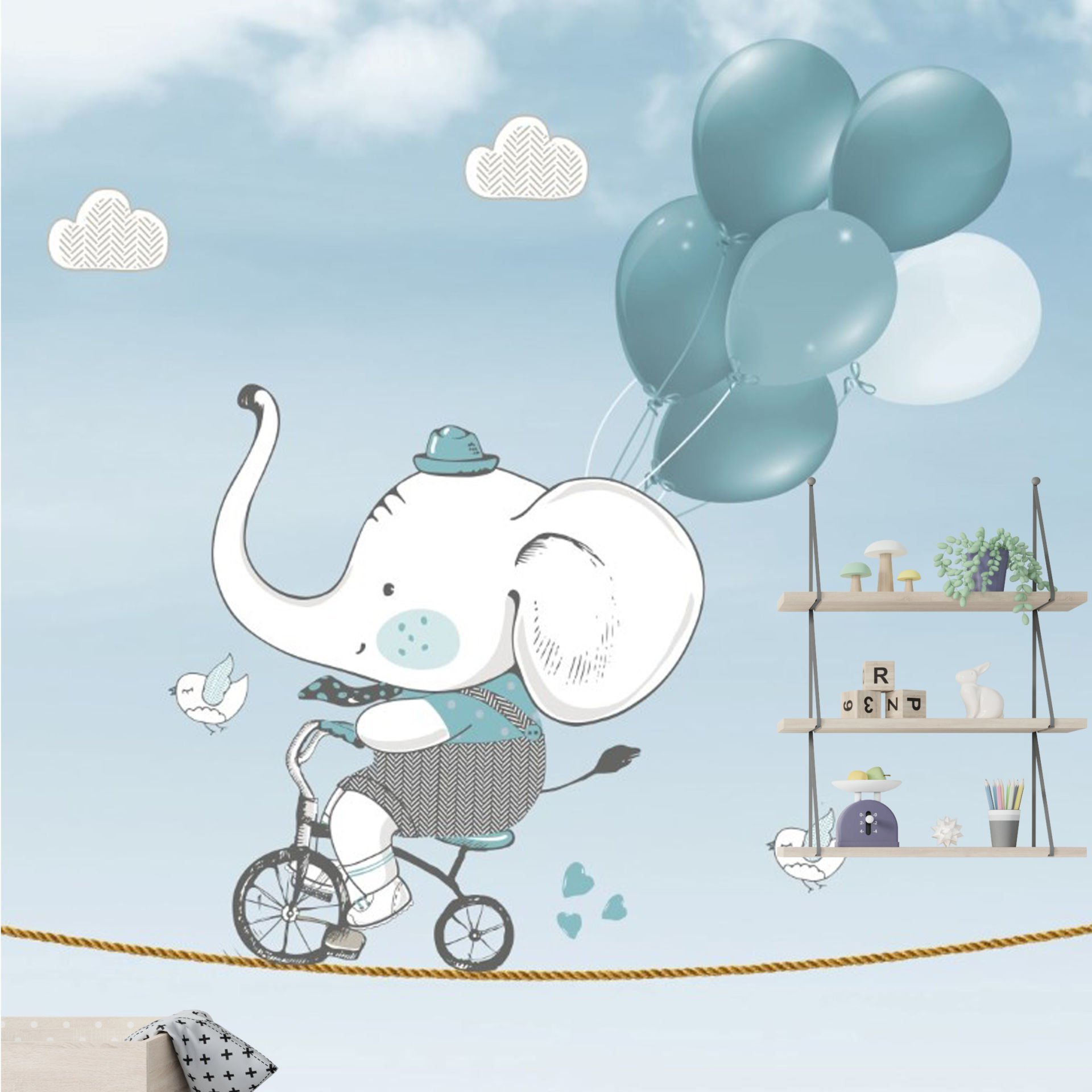 Uva Mavi Balonlu Bisikletli Fil Duvar Kağıdı