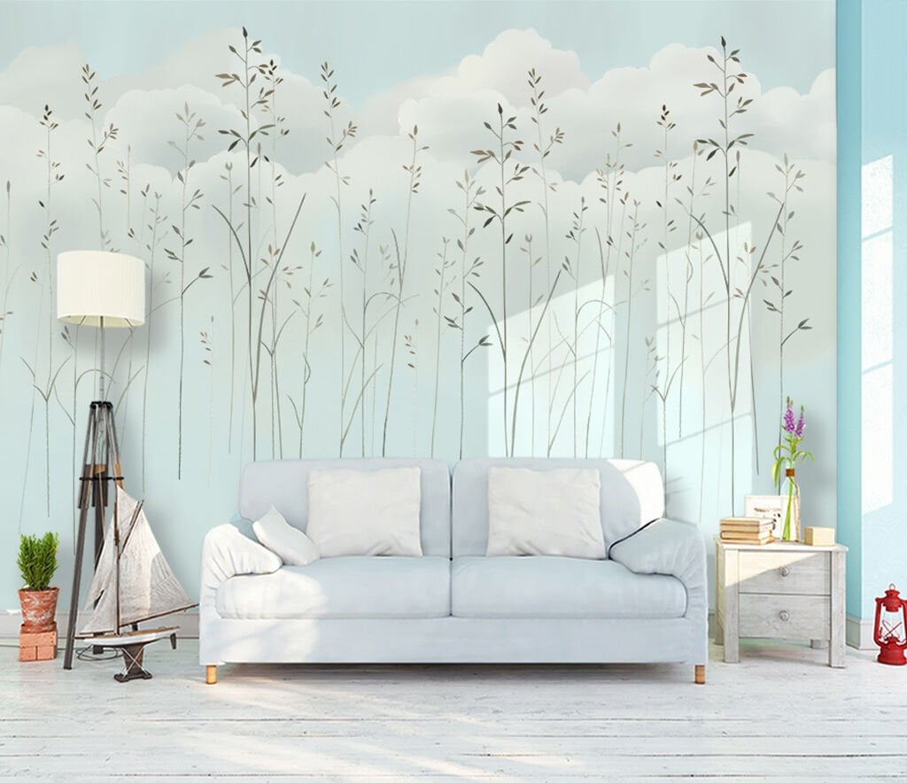 Mavi Bulutlar İçerisinde Zarif Ağaçlar Duvar Kağıdı