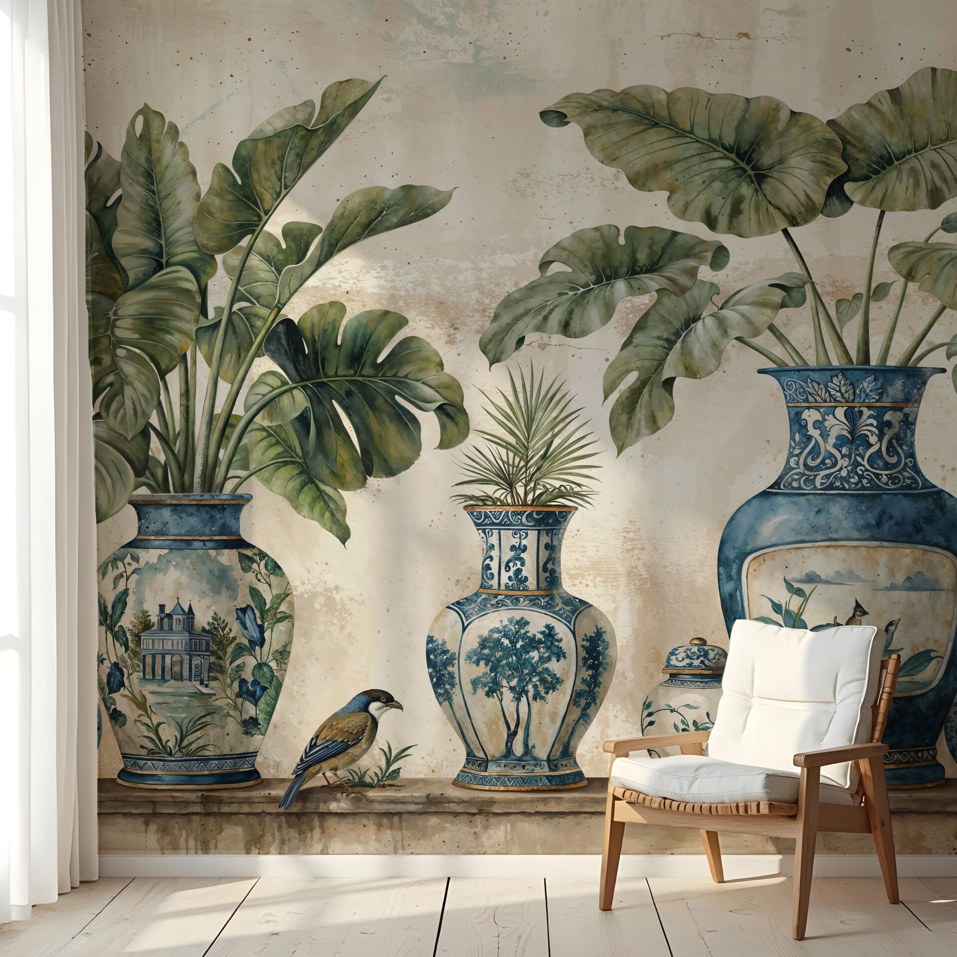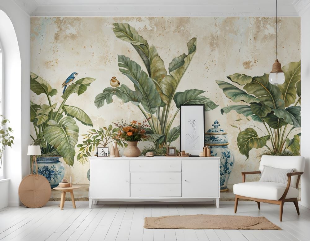 Mavi Hanedan Botanik Düş Tasarım Duvar Kağıdı