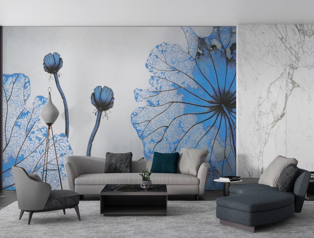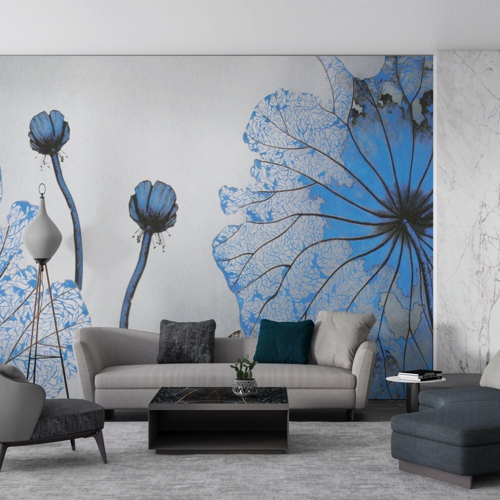 Mavi Hayalet Çiçek Tasarım Duvar Kağıdı