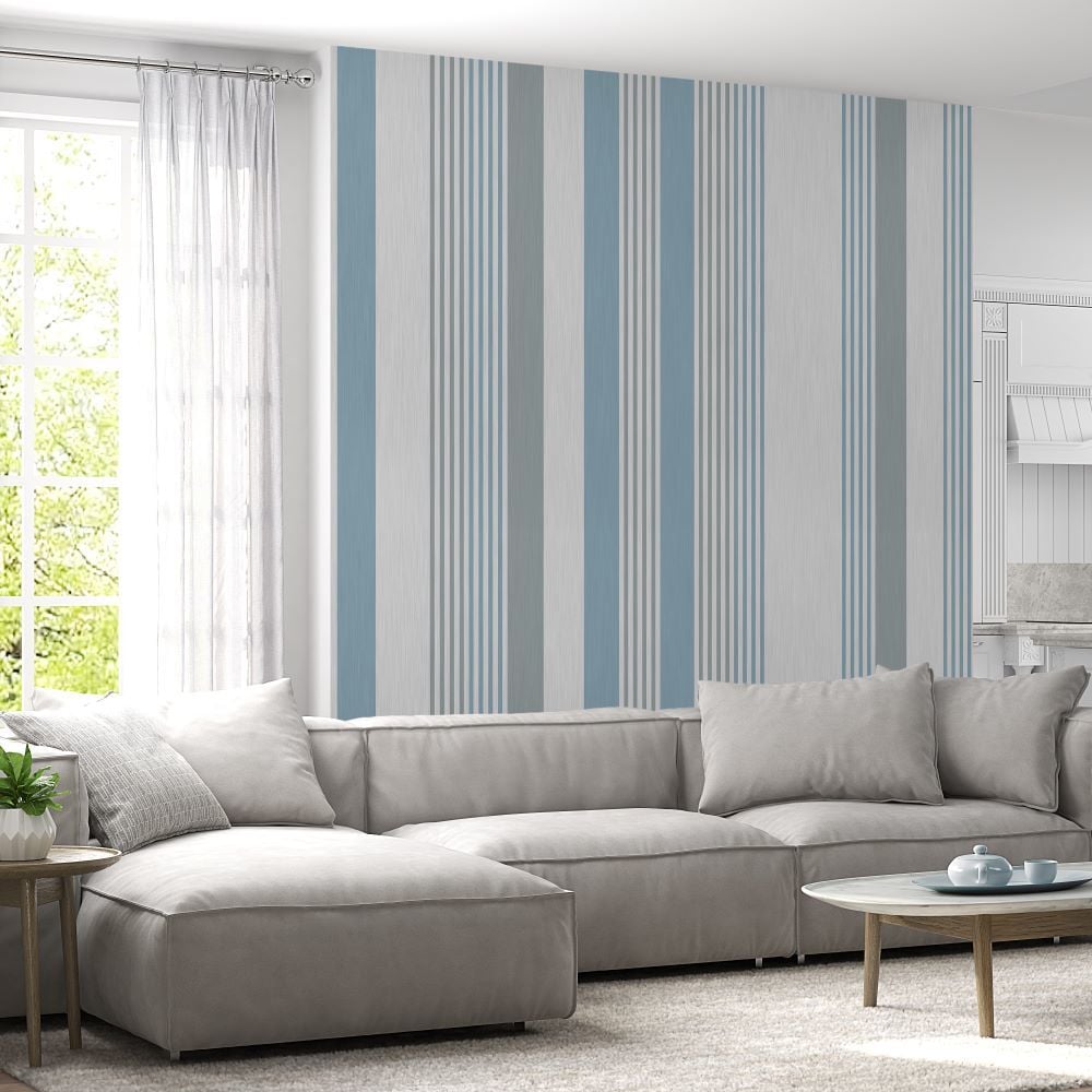 Mavi İnce Kalın Kombin Çizgili Duvar Kağıdı