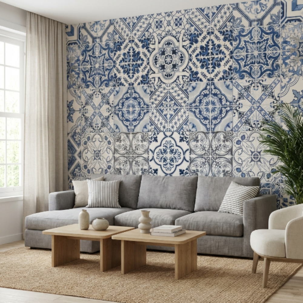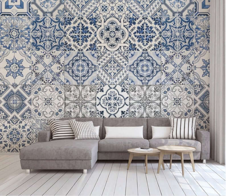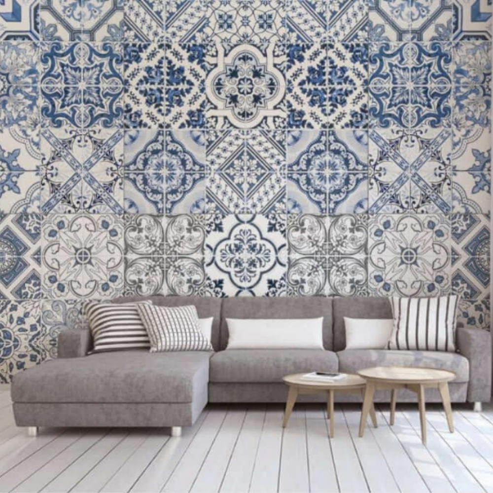 Mavi Kare Çini Desen Duvar Kağıdı