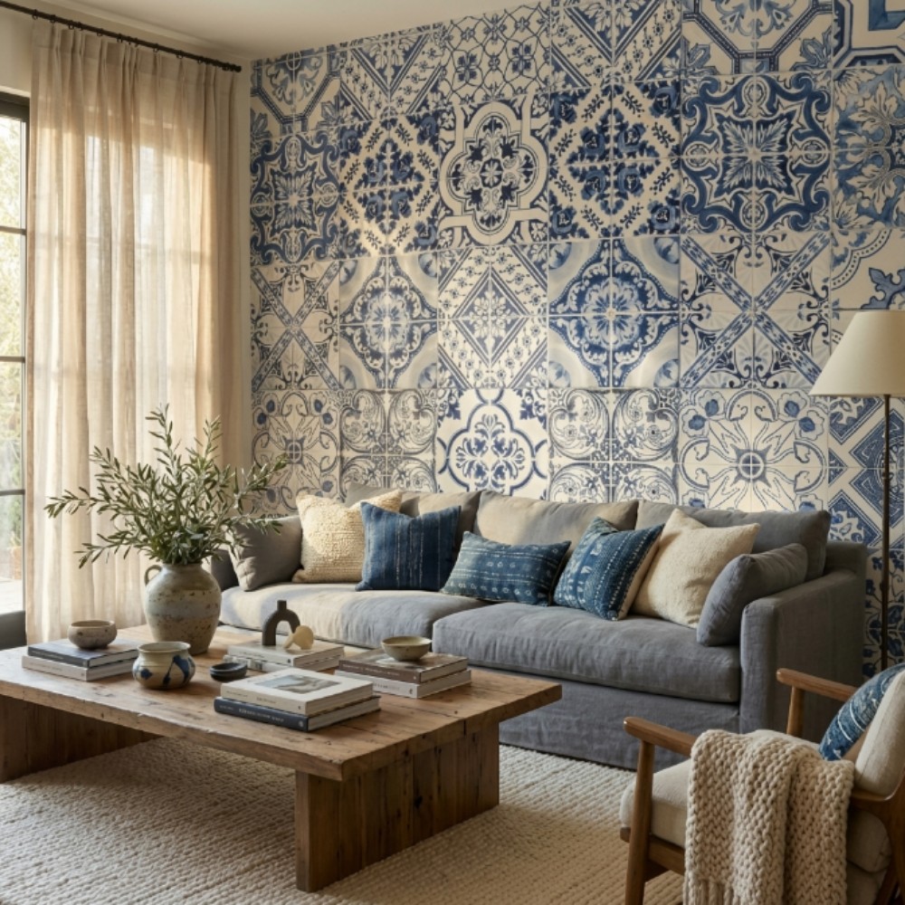 Bu tasarım, geleneksel çini sanatının zarif desenlerini modern kare formuyla yeniden yorumlar. Mavi tonların sakinleştirici etkisi ile birleşen simetrik yapı, mekânlarda ferah ve dengeli bir atmosfer oluşturur. Zamansız tasarım dili sayesinde hem klasik hem de modern dekorasyonlarla uyum sağlar.