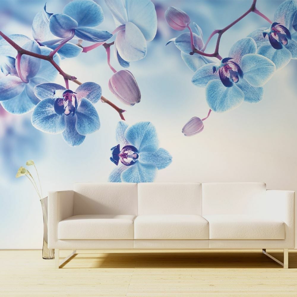 Mavi Lila Orkide Çiçekler Duvar Kağıdı