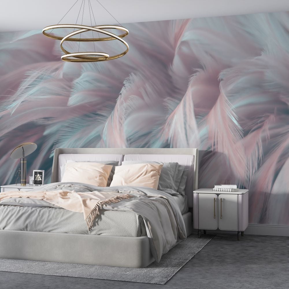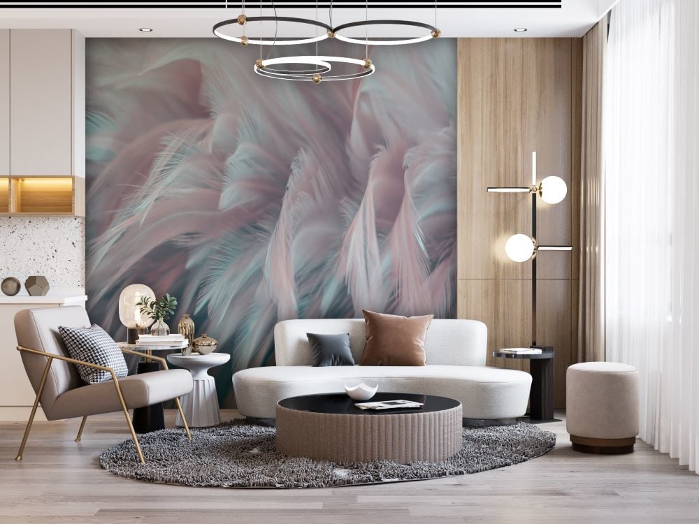 Mavi Mor Renk Geçişli Tüyler Tasarım Duvar Kağıdı